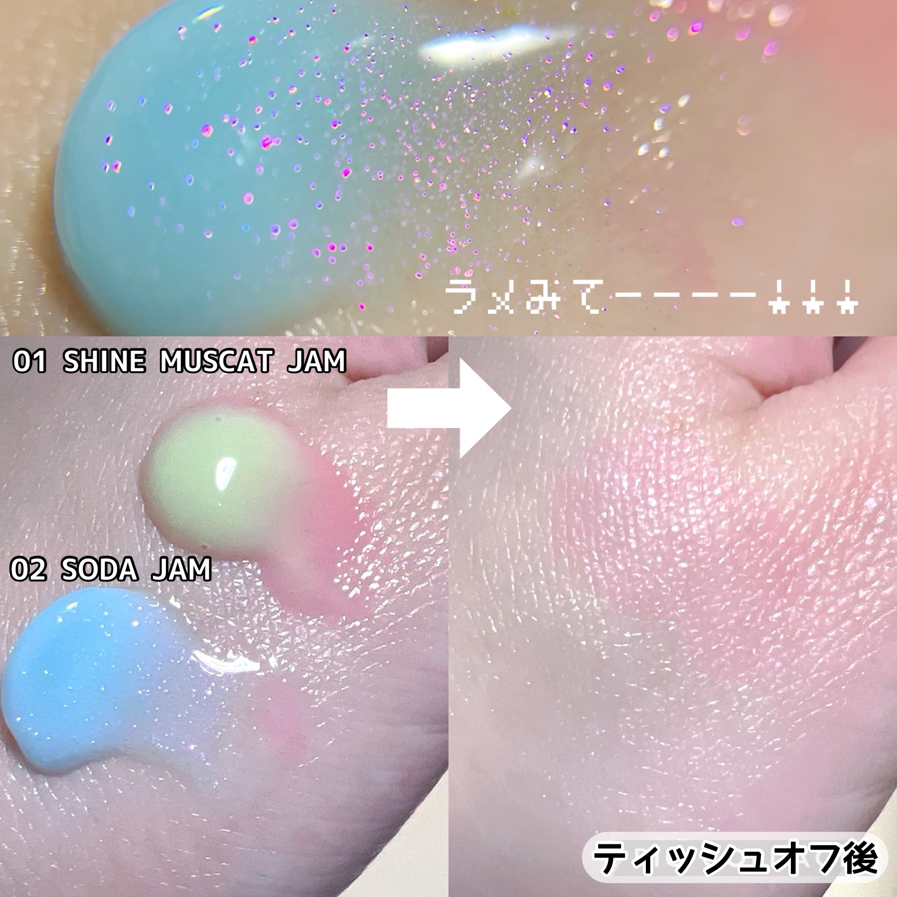 【透明感ソーダ🫧ピンクラメ入りバーム】Colorgramティントリージャム02.ソーダ参考価格1,100円(税込)もちぷるリップに見せつつ透明感もプラスしたいって時に便利な水色バーム♡淡い青みでキツすぎないしシアーだから、地色を活かせる発色だ...