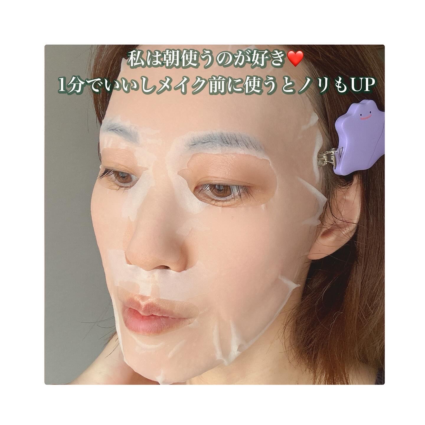 たったの1分で鎮静水分ケア! ✔︎PHAで肌の不要な角質をケア ✔︎5種のシカ成分で肌を鎮静 ✔︎11種類のヒアルロン酸で潤い補給 シートは薄めだけどたっぷりの美容液に浸されてるよ🌟 肌にピタッとフィットしてくれてさっぱりとしながらも水分をしっかりチャージしてくれるみたい✨ 1分でOK!なのが忙しい朝にさっとパック出来て嬉しい♡