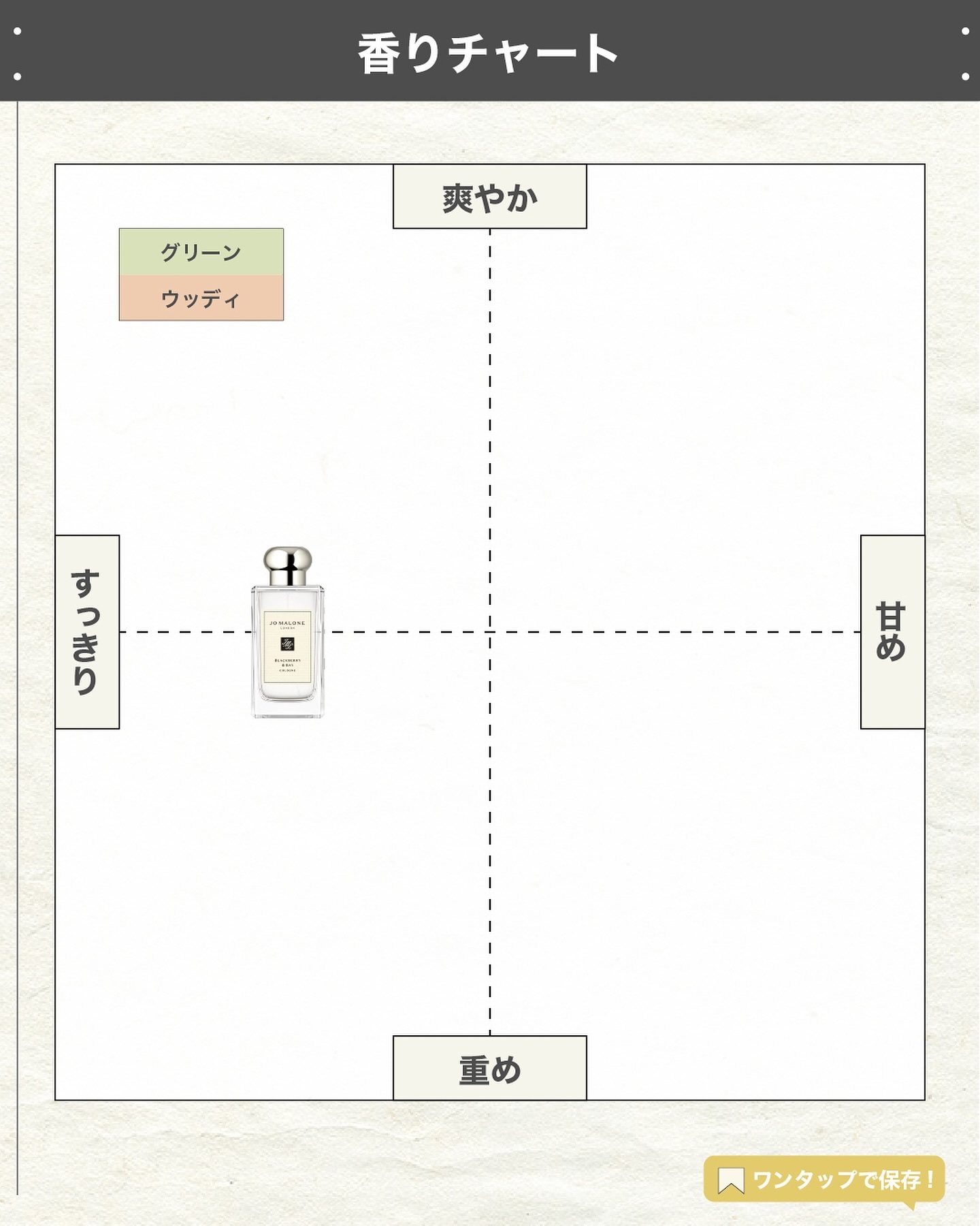 - 幼いころ夢中でブラックベリー摘みをした記憶。深く色づいた、酸味のあるブラックベリージュースに摘み取ったばかりの月桂樹の葉の爽やかなひねりと豊かに茂る草木のグリーンが躍動感を表現しています。さわやかで青々しい、男女ともに好まれる香りです。