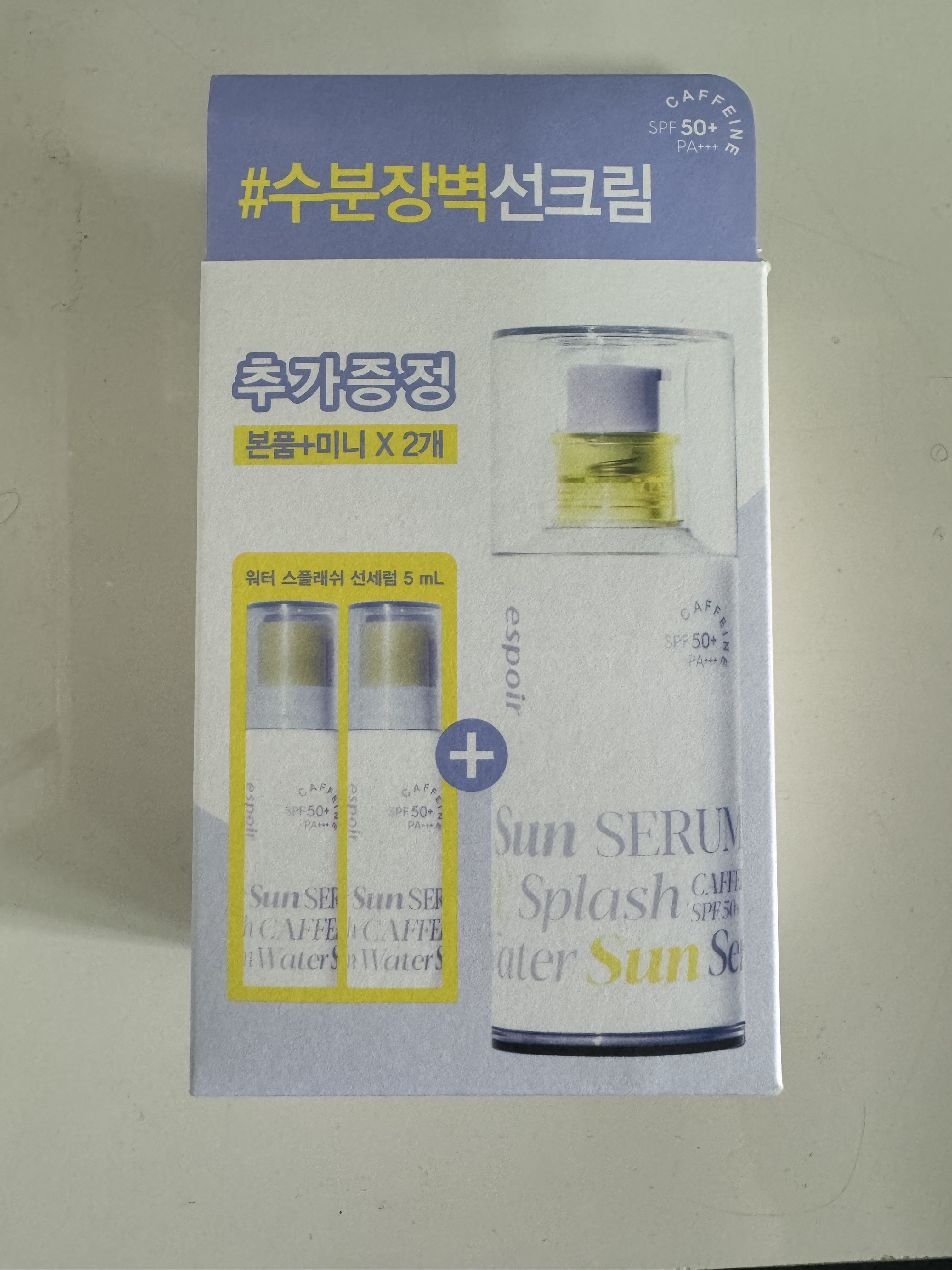 - 忙しい朝にスキンケアと日焼け止めを同時に完了!化粧水、クリーム、日焼け止め、化粧下地まで叶うオールインワン美容液。SPF 50+ / PA +++ カフェイン成分を最適な含量で配合し、朝のむくみをケア。フェイスラインをすっきり整えます。低分子ヒアルロン酸とペプチド配合で、肌を保湿し美容液の効果も。メイクの密着力をアップし、韓国メイクの特徴であるヘルシーなツヤを演出できる化粧下地としても◎ 使用に便利なポンプ式の容器を採用し、さらに時短を実現しました。 <サンクリームCE ミニ付き> +大人気商品エスポアのサンクリームセラミドのミニサイズがセットになって登場! 自然なトーンアップと水分たっぷりの保湿力でナチュラルなツヤを演出します。 【セット内容】 ウォータースプラッシュサンセラム50ml+サンクリームセラミド30ml <サンクリームフレッシュ CICA ミニ付き> +大人気商品エスポアのサンクリームフレッシュCICAのミニサイズがセットになって登場! 自然なトーンアップとさらっとした肌触りが、日焼け止めならではのべたつきをおさえます。CICA成分配合で、肌荒れ中や敏感肌のかたでも安心してご使用いただけます。 【セット内容】 ウォータースプラッシュサンセラム50ml+サンクリームフレッシュCICA30ml
