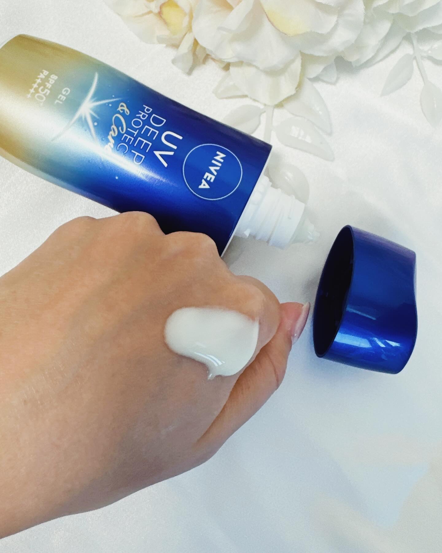 *ニベアUVディーププロテクト&ケアジェルリニューアルされた日焼け止めジェルUV-BだけでなくUV-Aにも着目した改良とのことSPF50+PA++++汗や水に強いスーパーウォータープルーフなので夏のレジャーの際に使ってみたいです顔・からだ共に...