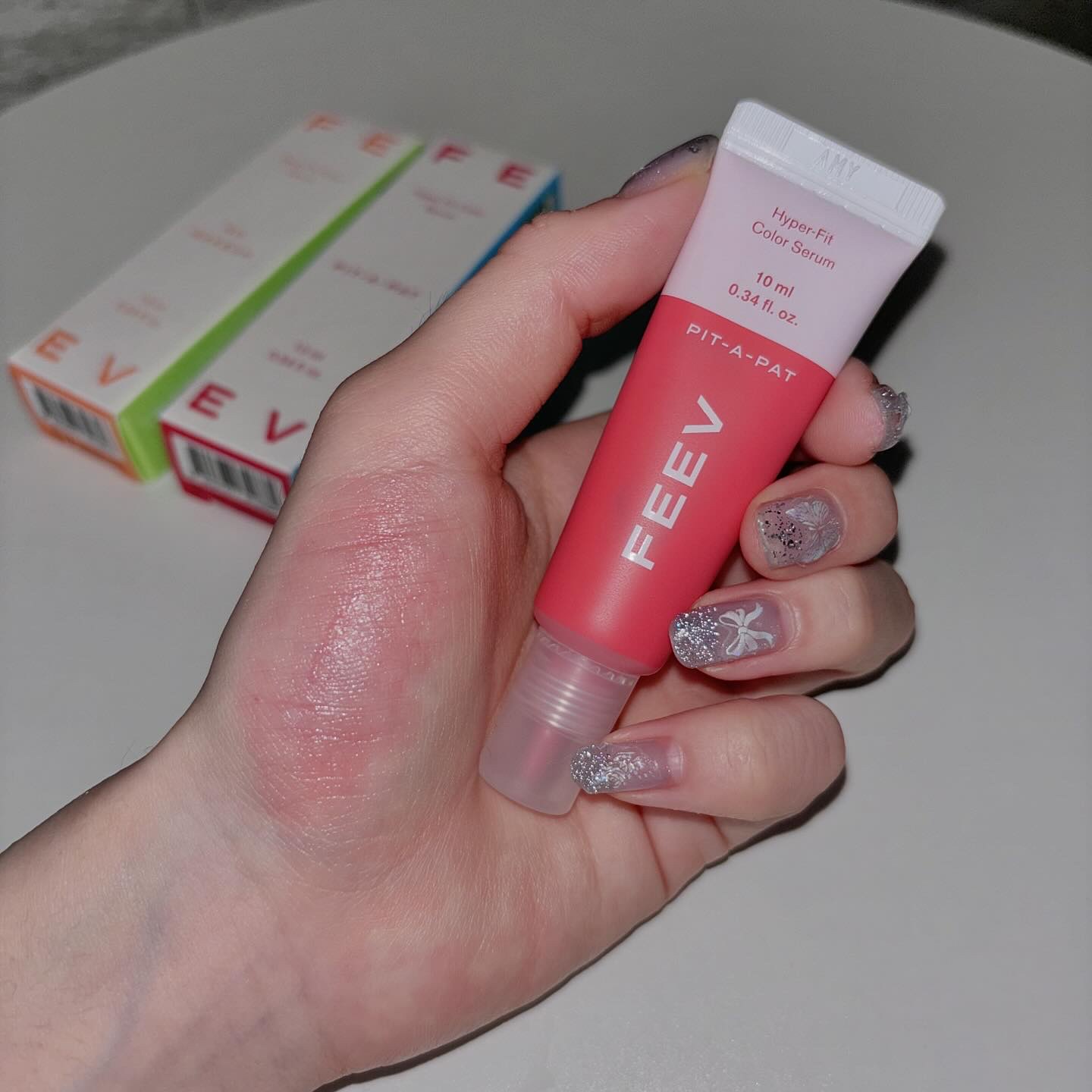 液体自体は蛍光パープルでびっくりするんですが、伸び広げると私の大好きなほんのり青みピンク🥺🩷 水彩という名の通りみずみずしいテクスチャなのでさらっとつけられる!! さらに塗ったあとのちょうど良いツヤ感とちゃんと肌を透かしてくれる透明感ときたらプチプラの域を超えています...