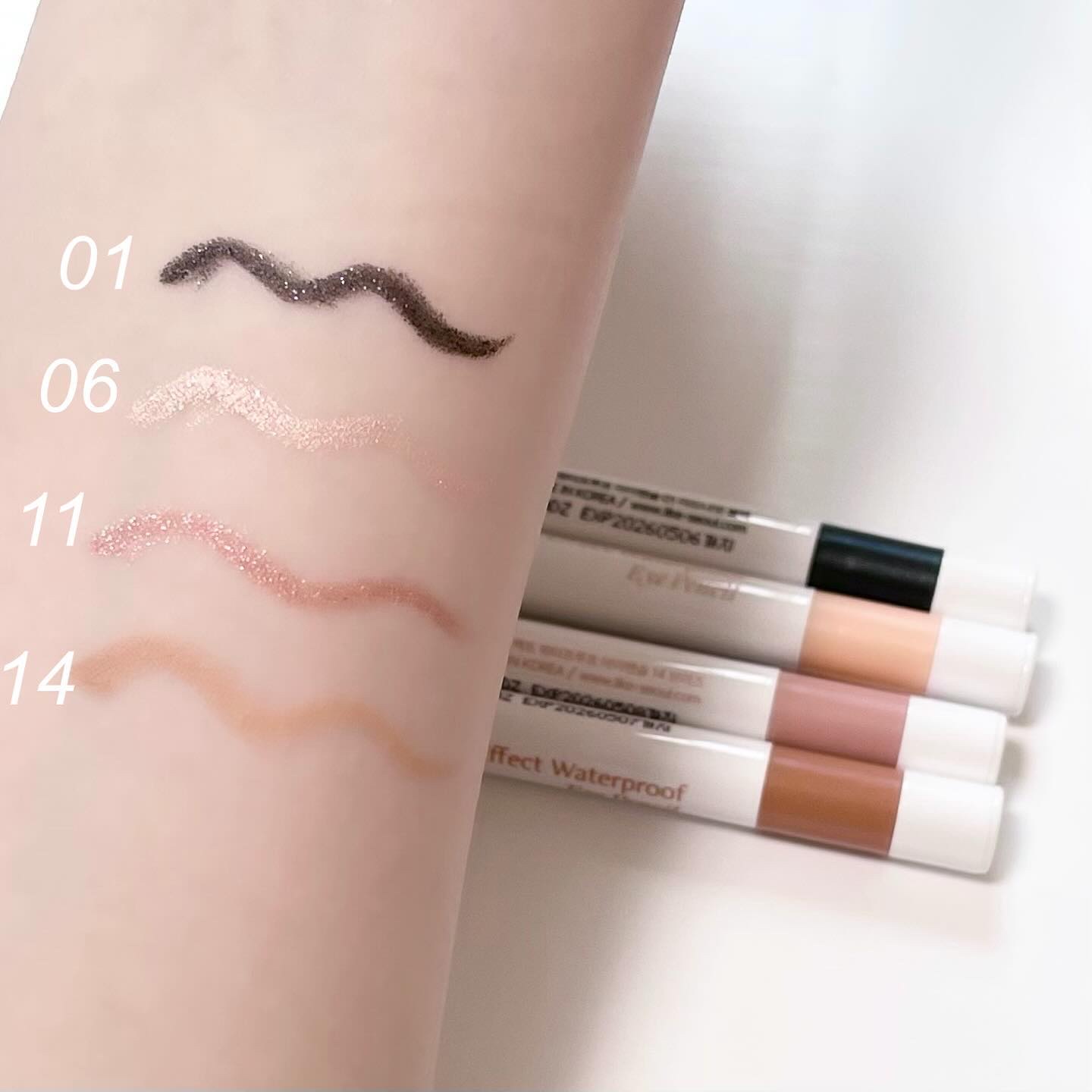 水をかけても擦っても落ちないペンシルアイライナーがホワイトパッケージにリニューアルして発売! 豊富なカラーバリエーションで全15色展開!中でもおすすめする4色をご紹介✨ リニューアルし、更にウォータープルーフ機能が強力に!本当に水をかけても擦っても落ちませんでした!👀