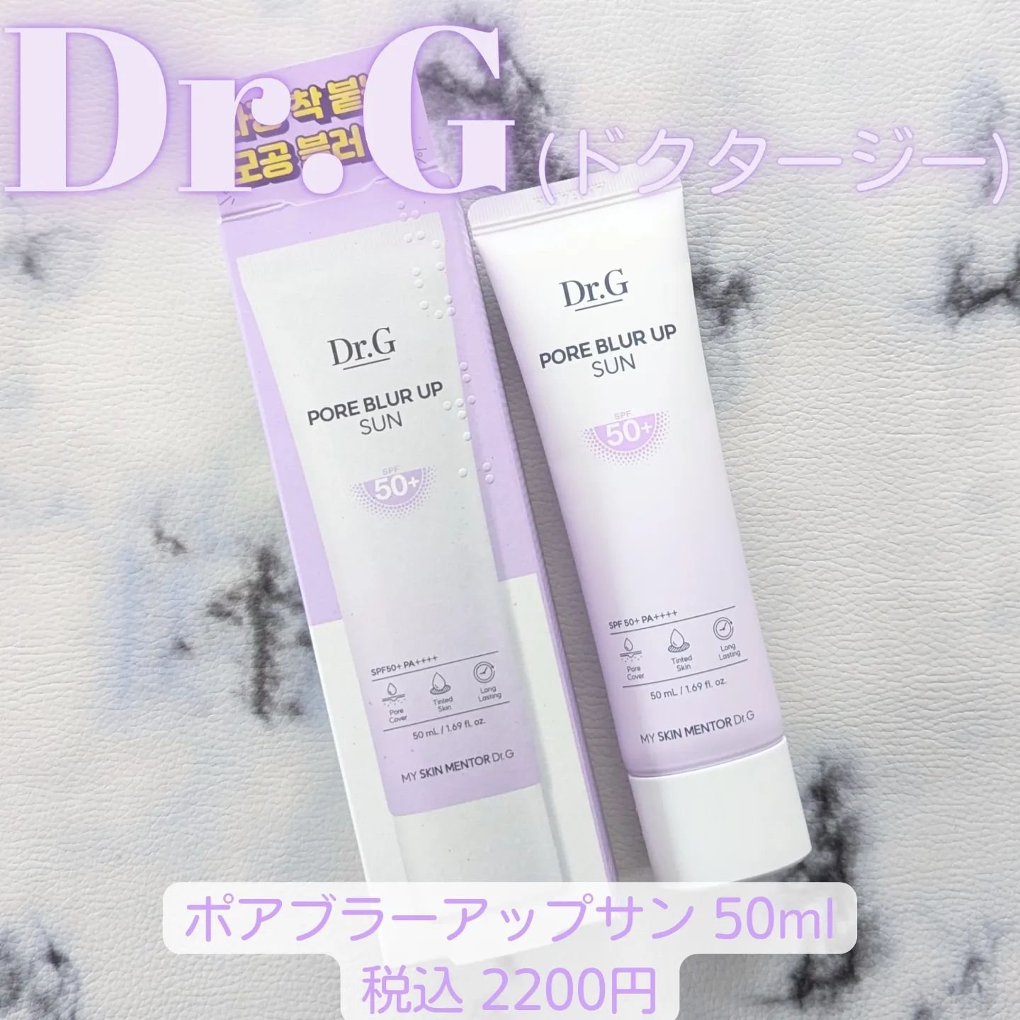 Dr.GポアブラーアップサンSPF50+PA++++50mlDr.G様より商品をご提供いただきました。2024年4月新発売。化粧下地としても使える日焼け止めです💁♀️ラベンダーカラーの軽やかなテクスチャー。のびが良く、自然に肌をトーン...
