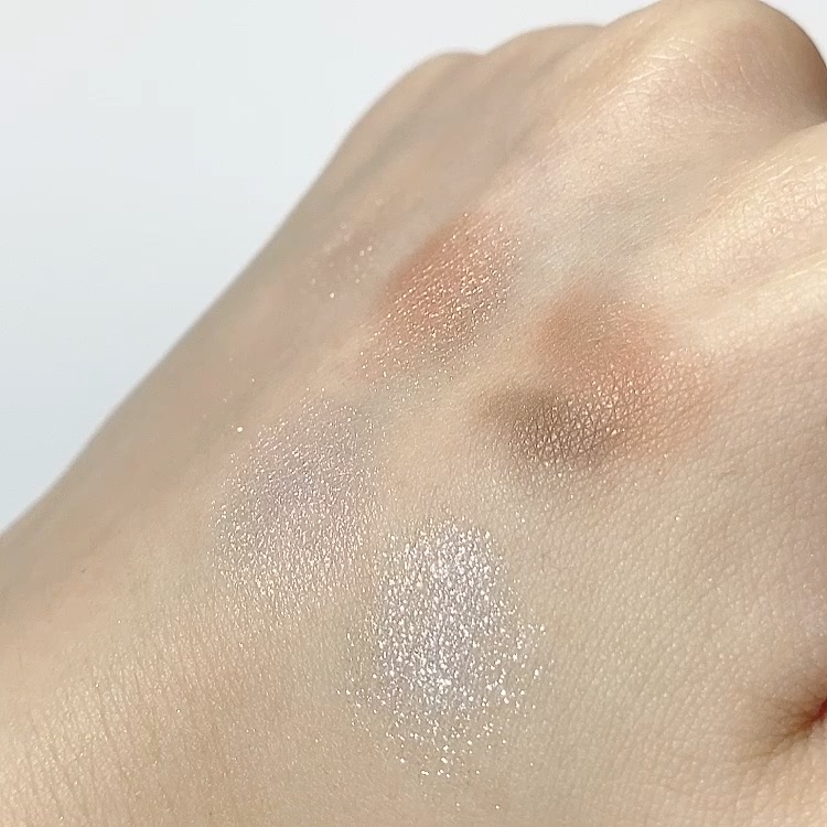 大人でも使いやすい上品なきらめき✨ どのカラーもラメの粒が細かく意外と使いやすい! 全体的に少ししっとりとした質感でラメのなかでは密着する方かと。ラメ飛びしにくい粉質です。 手持ちのアイシャドウにプラスするのはもちろんコレだけで仕上げられる◎