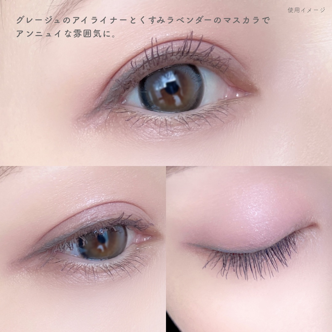 曇り空みたいなニュアンスカラーで儚げアンニュイ目元が作れちゃう! くすみ色好きにはたまらないKATEの新色🌥️ 雨霧グレージュは肌馴染みの良い絶妙グレー いつものアイライナーをこれにするだけで抜け感🙆♀️ 薄明ラベンダーはほんのり紫ニュアンス! まつ毛の存在感を控えめにして、アンニュイに💜