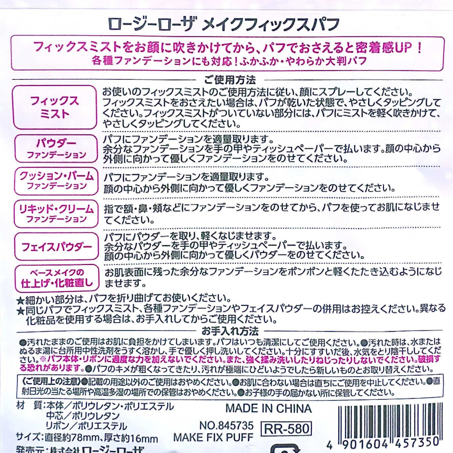 商品詳細情報ロージーローザ メイクフィックスパフ