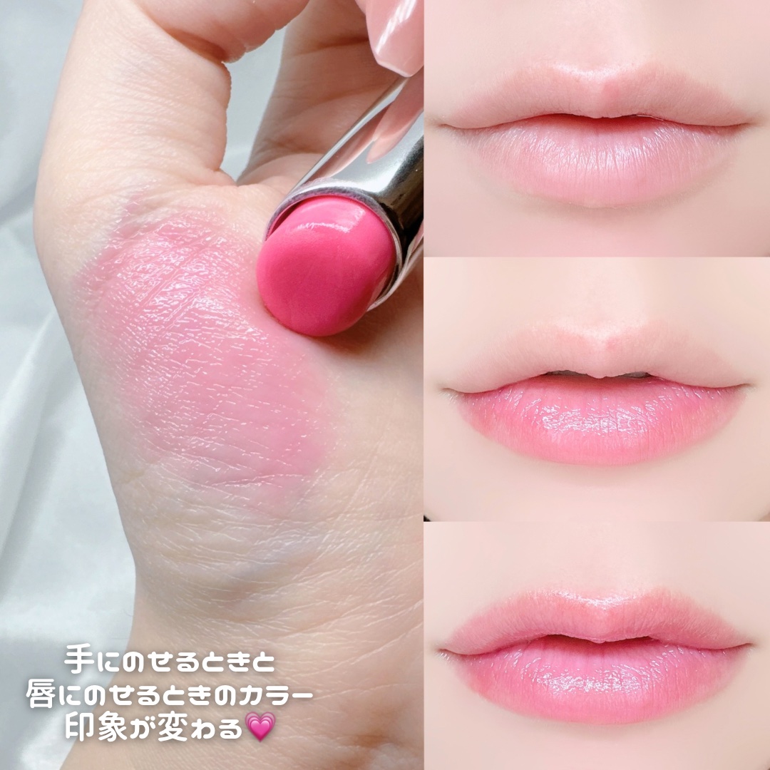 グロー プレイ テンダートーク リップ バームはブランド独自のモイストリフレクト処方*を採用。 唇の水分量に反応して自分だけの色に発色します✨ 唇の水分量に反応するフォーミュラとシアーな発色のおかげで塗ってみると自分の唇に馴染んでびっくり…! 私の唇だとシアーで淡い青みピンクに発色! ツヤ感のある仕上がりも可愛かったです💗 リップマスクのように保湿力があってしっとり感が続くところ、ティントではないのに色持ちもいいなと思いました✨ ただ、唇が荒れていると皮むけや縦線が目立ちやすいところと465フォトジェニックの青みが強すぎて顔全体で見た時に浮いてしまったので☆4にしました😌