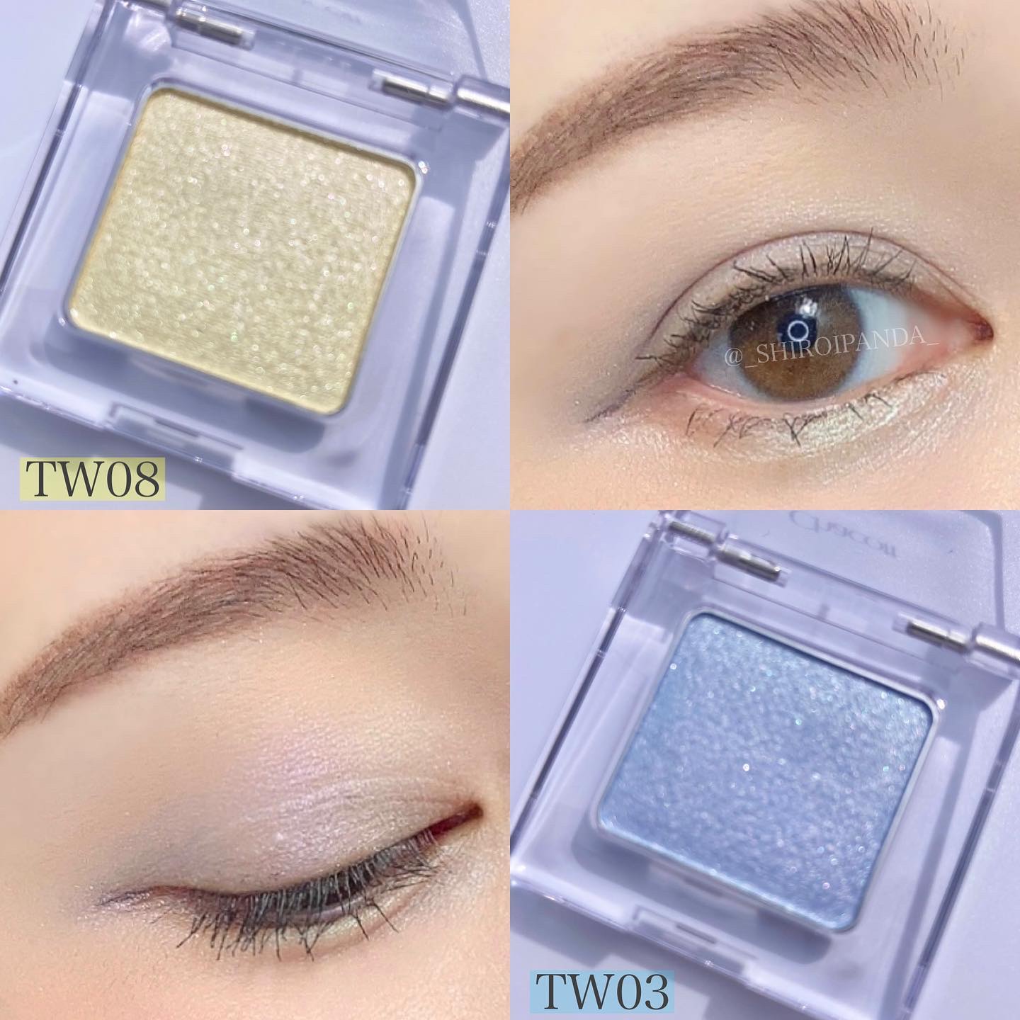 - 9つの質感に秘められた無限の可能性を持つカラーバリエーション。 【トゥインクル】 まるでヴェールのように、極小の光の粒がまぶたを包み込み、上品な華やかさをプラスしてくれるトゥインクル。 ポイント使いをすれば、自然で上品なツヤ感に。普段のメイクのニュアンスチェンジにも活躍します。
