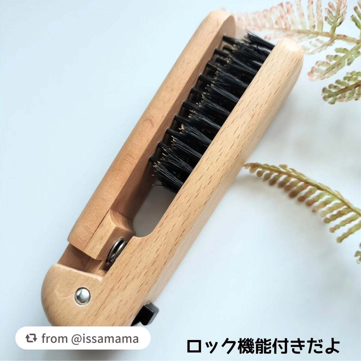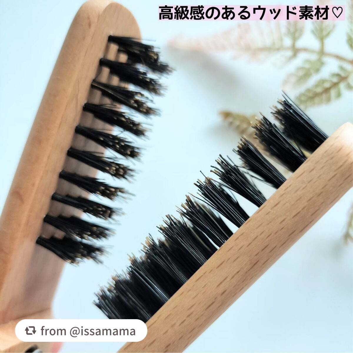 - 髪や頭皮へのなじみがよく、コシがありながらも摩擦の少ない天然豚毛を使用しています。 ご自宅でのケアはもちろん、持ち運びしやすいコンパクトサイズなので、外出先でのお直しにも。 ストッパー付きなので、バッグやポーチの中でもかさばらずに収納できます。