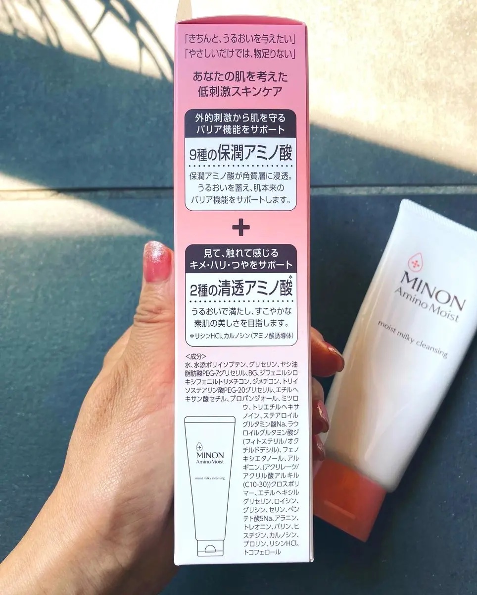 - <ミノン アミノモイスト モイストミルキィ クレンジング> 水、水添ポリイソブテン、グリセリン、ヤシ油脂肪酸PEG-7グリセリル、BG、ジフェニルシロキシフェニルトリメチコン、ジメチコン、トリイソステアリン酸PEG-20グリセリル、エチルヘキサン酸セチル、プロパンジオール、ミツロウ、トリエチルヘキサノイン、ステアロイルグルタミン酸Na、ラウロイルグルタミン酸ジ(フィトステリル/オクチルドデシル)、フェノキシエタノール、アルギニン、(アクリレーツ/アクリル酸アルキル(C10-30))クロスポリマー、エチルヘキシルグリセリン、ロイシン、グリシン、セリン、ペンテト酸5Na、アラニン、トレオニン、バリン、ヒスチジン、カルノシン、プロリン、リシンHCl、トコフェロール