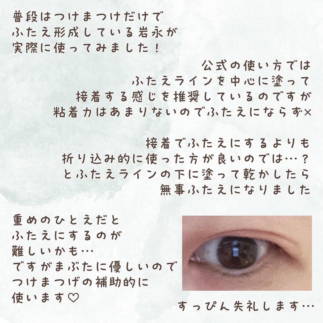 | 二重のり・アイテープランキング第70位 | 重い一重でも二重になりました!アイシャドウなどすればかなり目立たなくはなります! | 詳細を見る | |