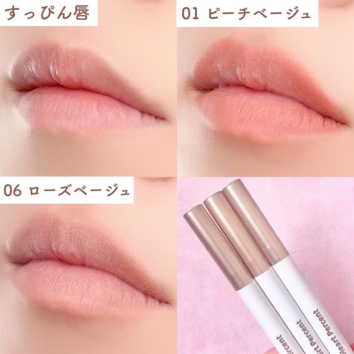 塗って時間が経つと唇の凹凸をなめらかにして密着し、ぷるんとしたボリューム感のある唇に♡♡ サラッとしたなめらかなテクスチャーで軽いつけ心地でベタつきもないため、塗っても不快感がなく使いやすいです😊 今回の新色は穏やかな春風のようにより一層柔らかくなった果実をイメージしたレイジーベージュカラー!!