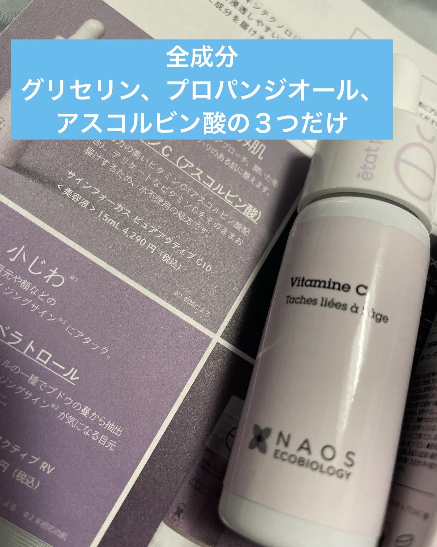 とろみのあるテクスチャー🫧 油膜感はありますが、伸びも肌なじみも良くてお気に入り❣️ ベタベタも感じずに使えました!! 私は朝にビタミンCを使いたいので メイク前にも試しましたがモロモロしなかったです✌ アスコルビン酸配合🍋 デリケートなビタミンC(アスコルビン酸)を そのまま届けるために【水不使用処方】だそう!!