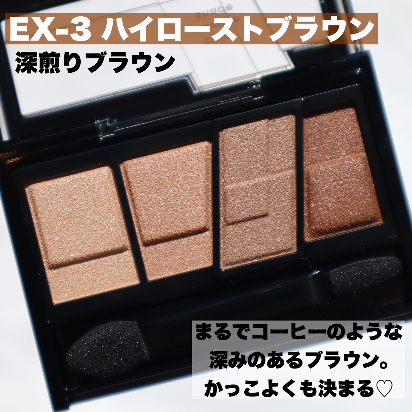 - カラーニュアンスシェードを目尻に入れるだけで目幅を大きく見せ※、抜け感のある明るい大きな目元に仕上るブラウンアイシャドウ。 ブラウン×カラーニュアンスの4色セット。※メイクアップ効果