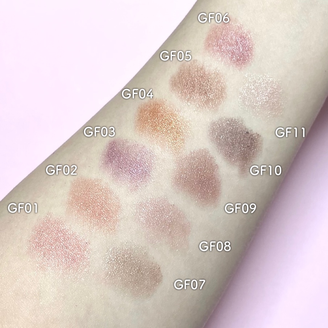 💫SHINYシリーズ「高輝度ガラスパール×カラーパールの美しいきらめき」 💫RICHシリーズ「リッチな高発色と繊細なツヤで色遊びを楽しめる」 💫FLUFFYシリーズ「ふんわり・しっとり肌と同化するセミマット」 💫DAZZLEシリーズ「まばゆい大粒偏光パールをMIX高い透明感で重ね方自在」 💫GLOSSYシリーズ「洗練をまとう上品な光沢光を味方に魅惑の存在感」