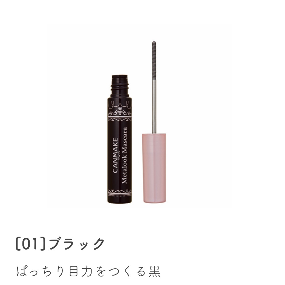 (ꇐ₃ꇐ)キャンメイクメタルックマスカラ01ブラックまつ毛に液が均一につく。ダマになりにくい。目頭・目尻も塗りやすい。ボリュームとかロング感は物足りないので、自分は下まつげ用に。#キャンメイク#CANMAKE#メタルックマスカラ#マスカラ#メ...