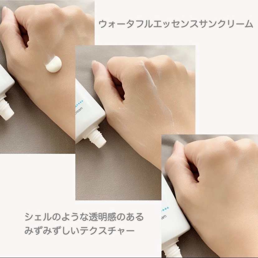ウォータフルエッセンスサンクリーム→SPF50+・PA++++日焼けによるしみ、そばかすを防ぎます。水のようななめらかな使用感で、しっとりうるおう日焼け止めクリームです。→テクスチャーは、さらりとしたクリームで、水のような軽い付け心地がとって...