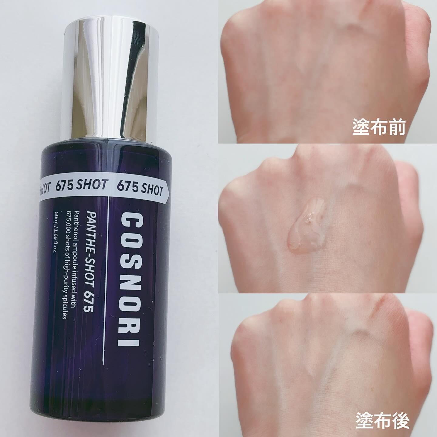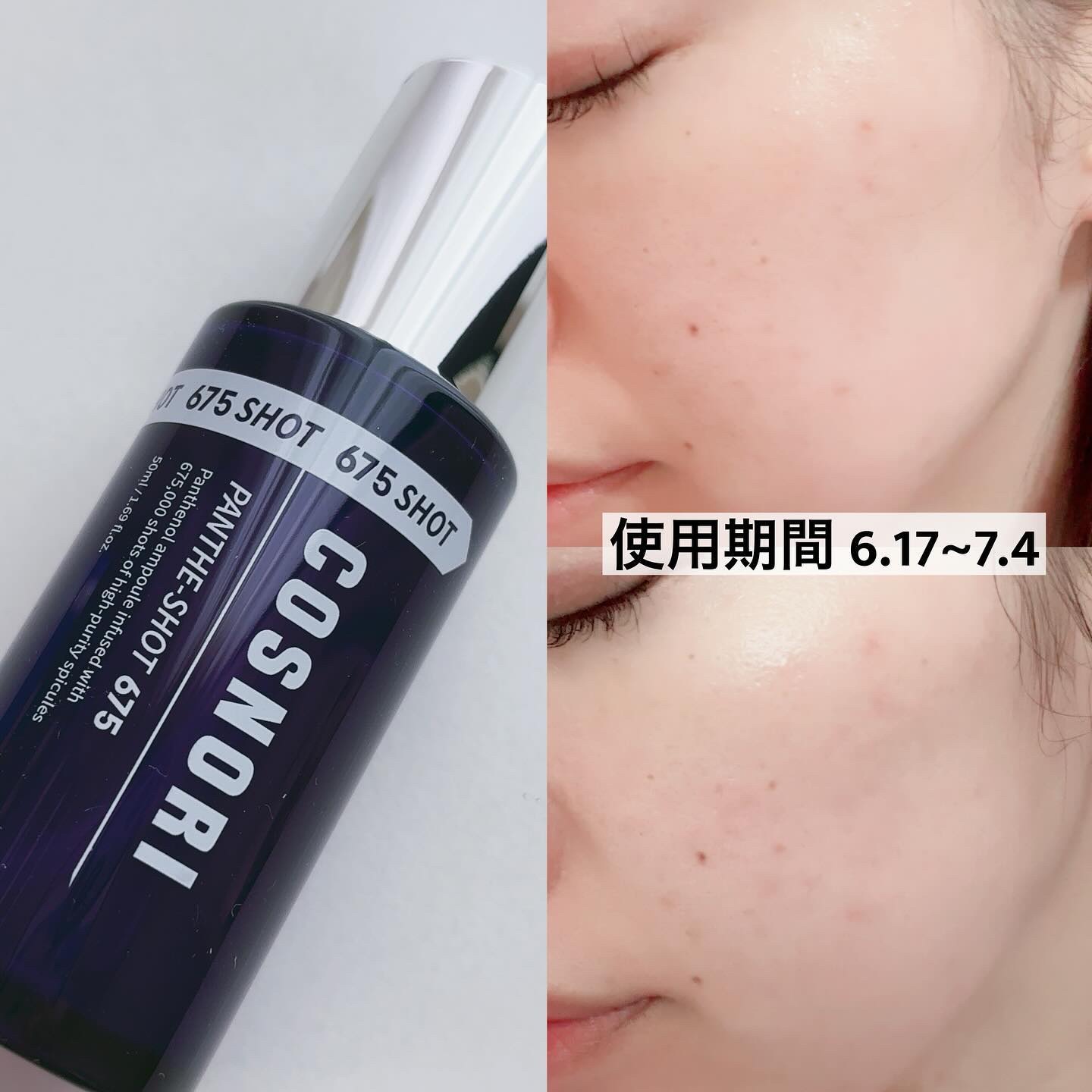 COSNORIコスノリパンテショットハリ肌生成部第2期に入部し、パンテショット675をお試しさせていただきました❣️夜のみ間隔を開けて2週間使用しました。多少のチクチク感は当然ありますが、痛くない程度で私は平気でした🥰透明なジェル状のテクスチ...