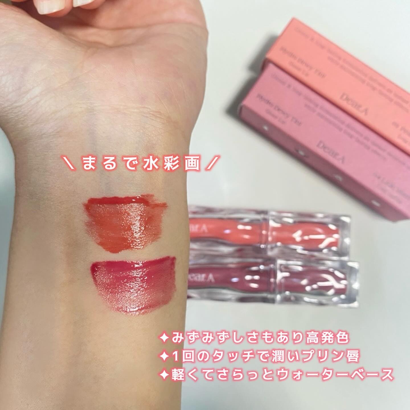 つややか×うるっと水光ティント💋 まるでプリンのようなぷるぷるプリンティント🍮 水彩の発色&みずみずしい光沢感💖 重ね塗りするほど透明感のある豊かなカラー感が特徴です♡ 色持ちと潤いが素晴らしい👏🏻 見た目もお洒落で可愛いしめっちゃおすすめ🩷
