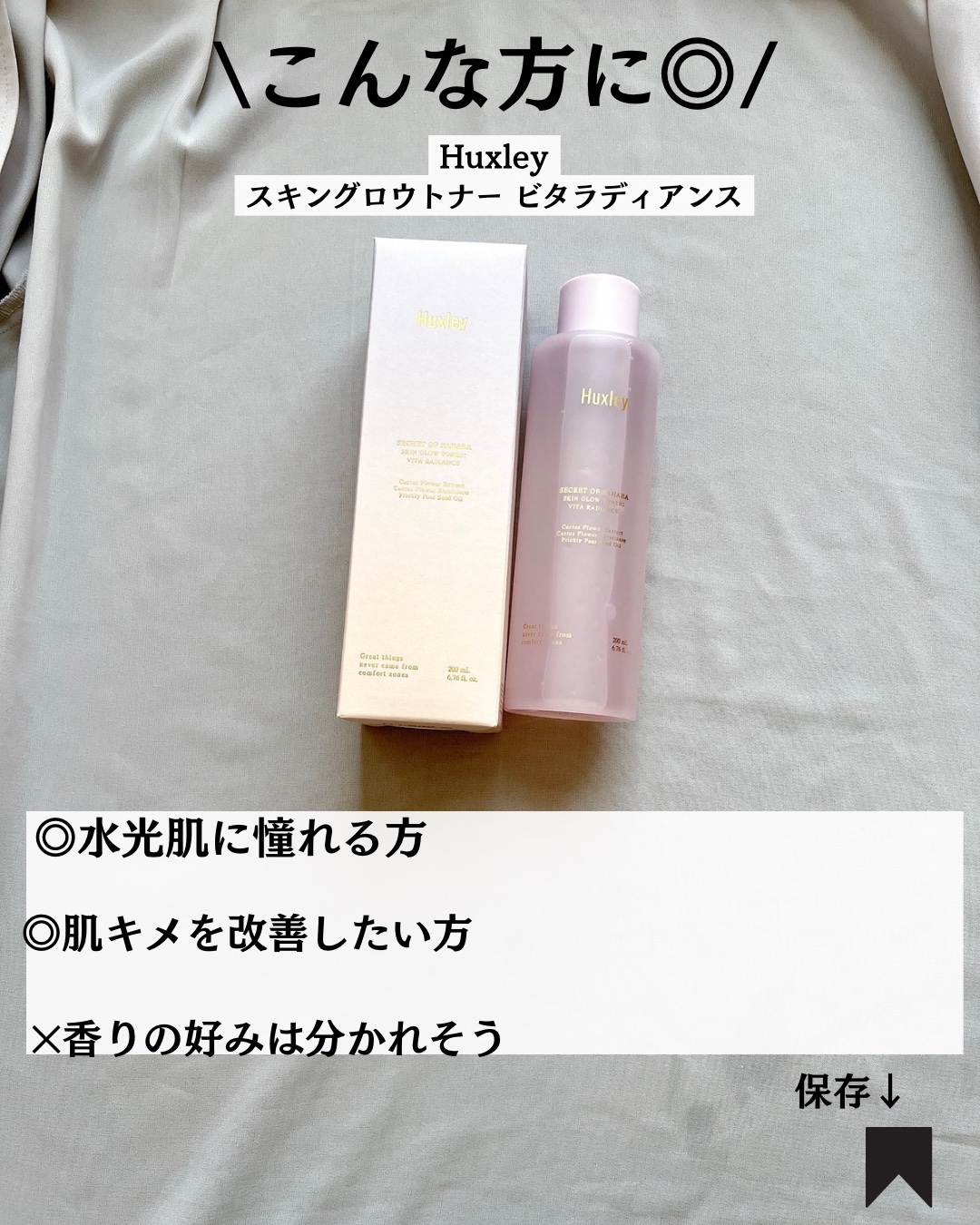 低分子のサボテン発酵液が肌の角質層まで水分を与えてくれて、インナードライ肌のサポートに役立つよ🤍 pH6.5の弱酸性だから肌タイプを問わずに使用できるよ🧡 香りはボタニカルなモロッカンガーデナーのハクスリーらしい香り🌿