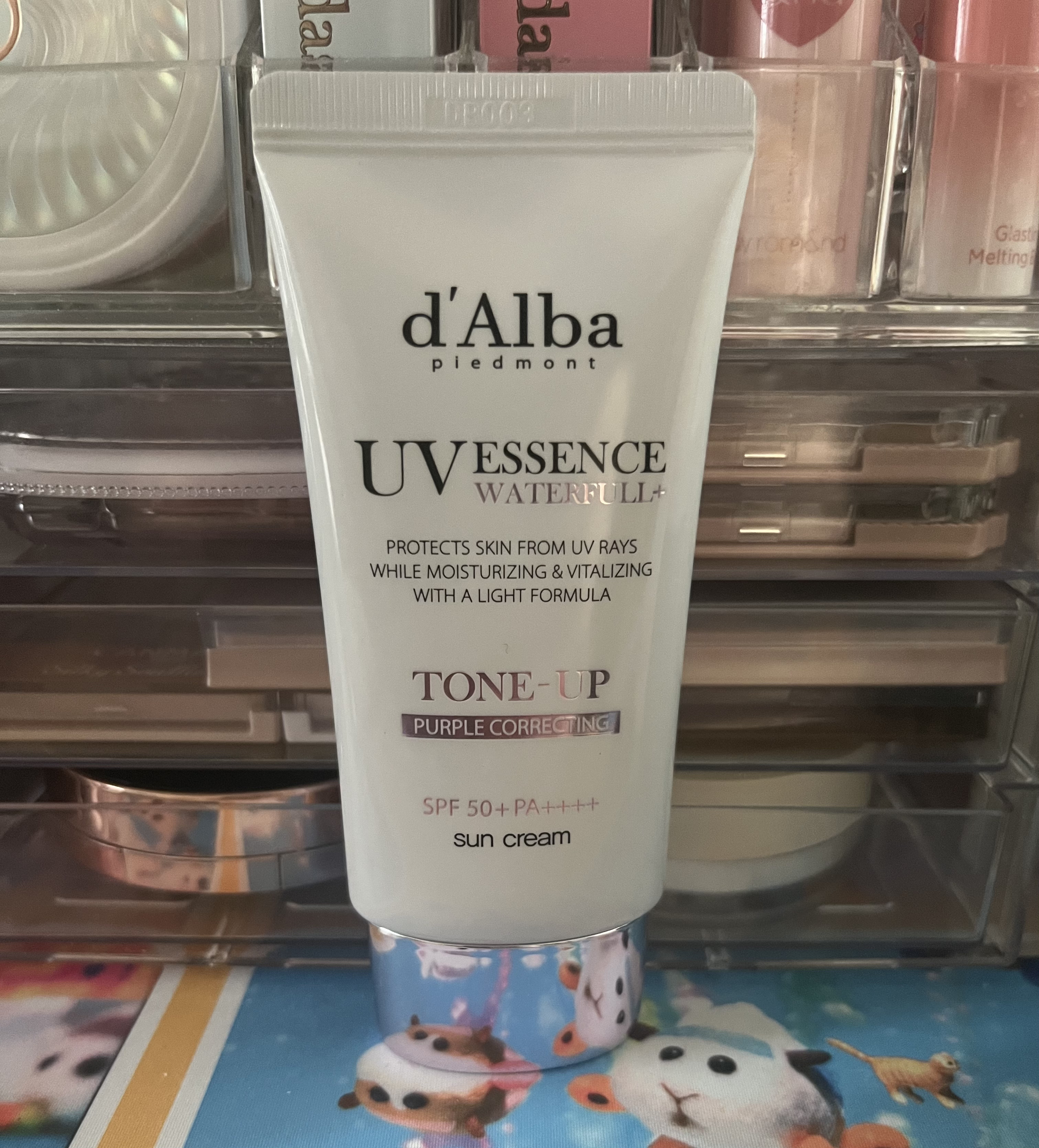 ダルバ ウォータフル トーンアップ サンクリーム パープルはかなりしっかりめにトーンアップしてくれます◎ カラーはブルベ向きの色です! ダルバ ウォータフル トーンアップ サンクリーム ピンクはイエベ、ブルベどちらもOKなので何を買うか悩んでいる方にはこれがおすすめ! ダルバ ウォータフル エッセンス サンクリームは下地としてではなく日焼け止めとして使用します。無色なので首などの全身塗れます!