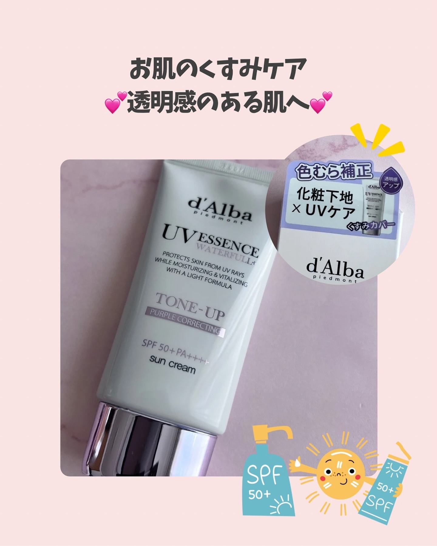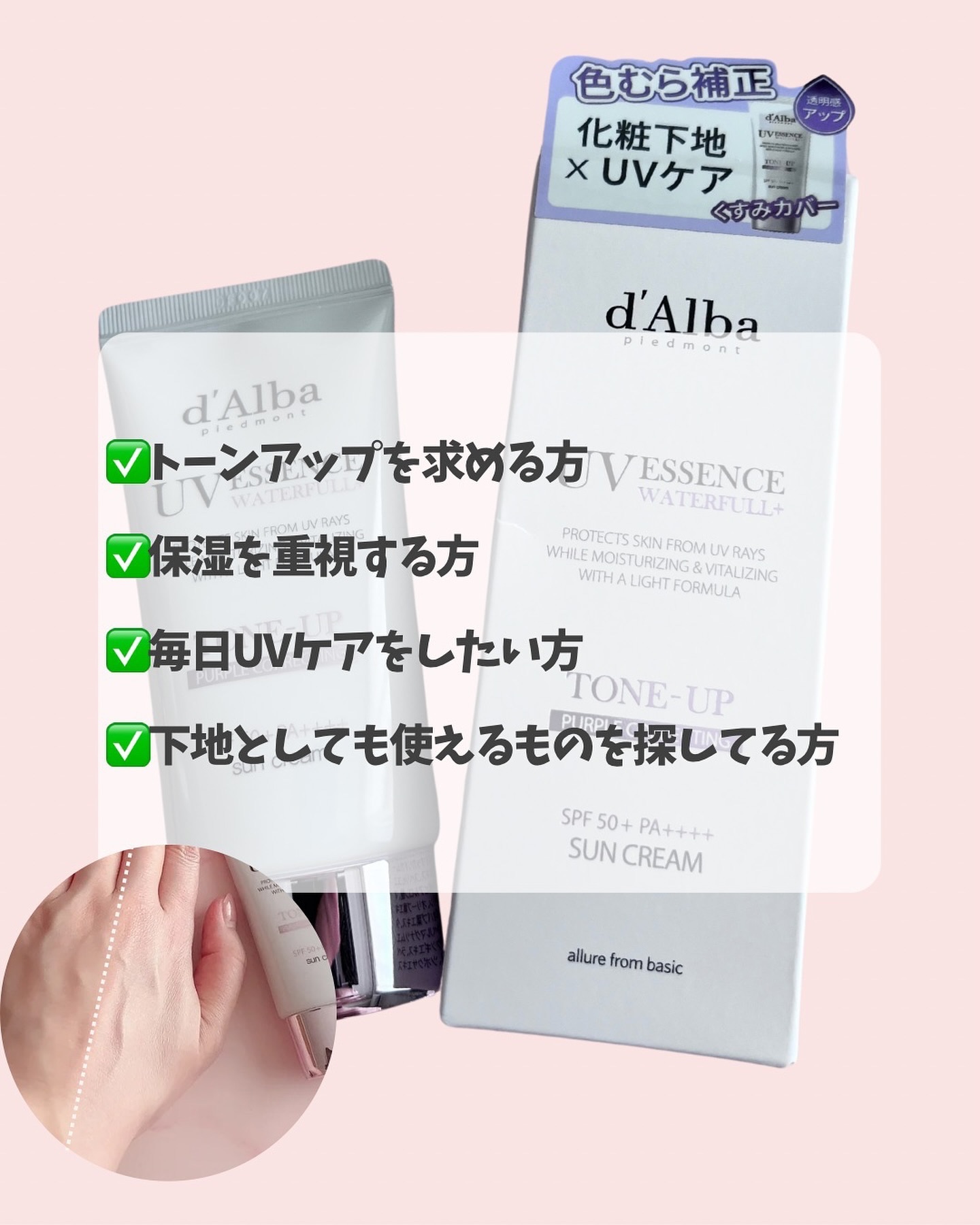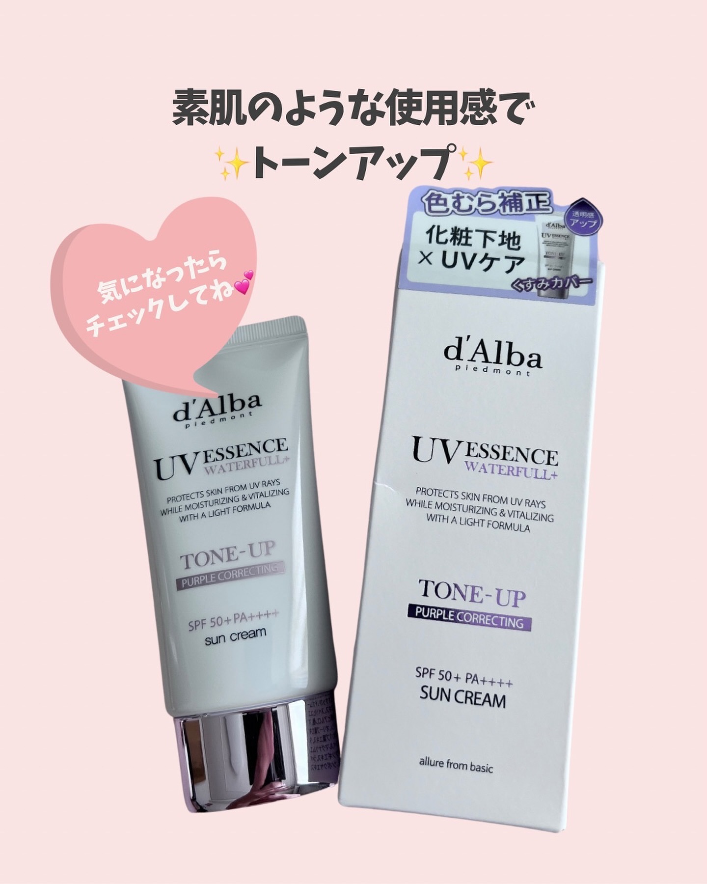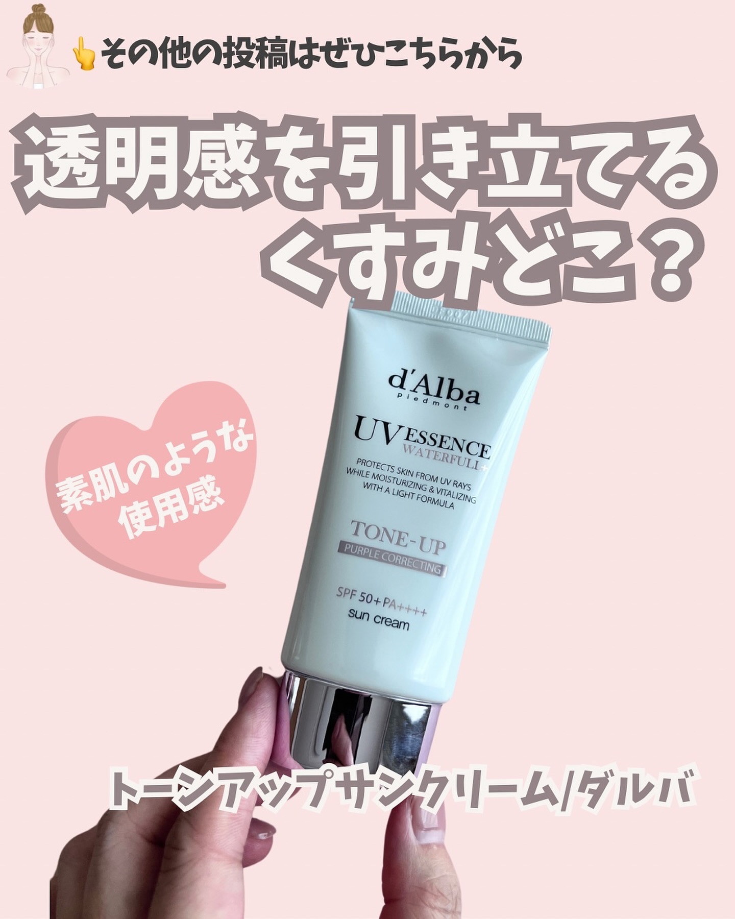 @dalba_japanさまの💓ウォータフルトーンアップサンクリームのピンクをずっと愛用中🩷🫶ずっと気になってたパープルを試してみたよ💜-----------------🤍d‘Alba🤍❤︎ウォータフルトーンアップサンクリーム❤︎パープル❤︎...