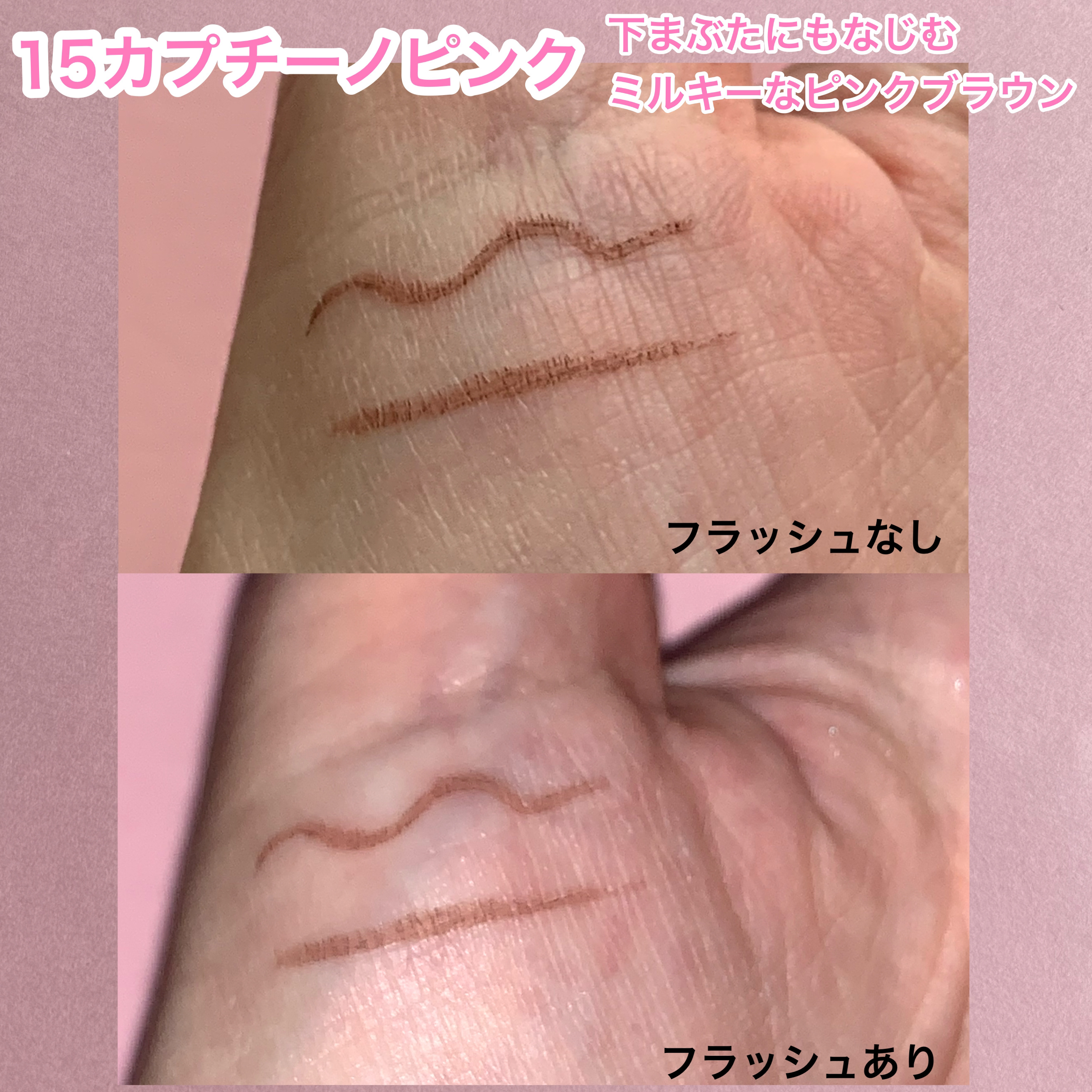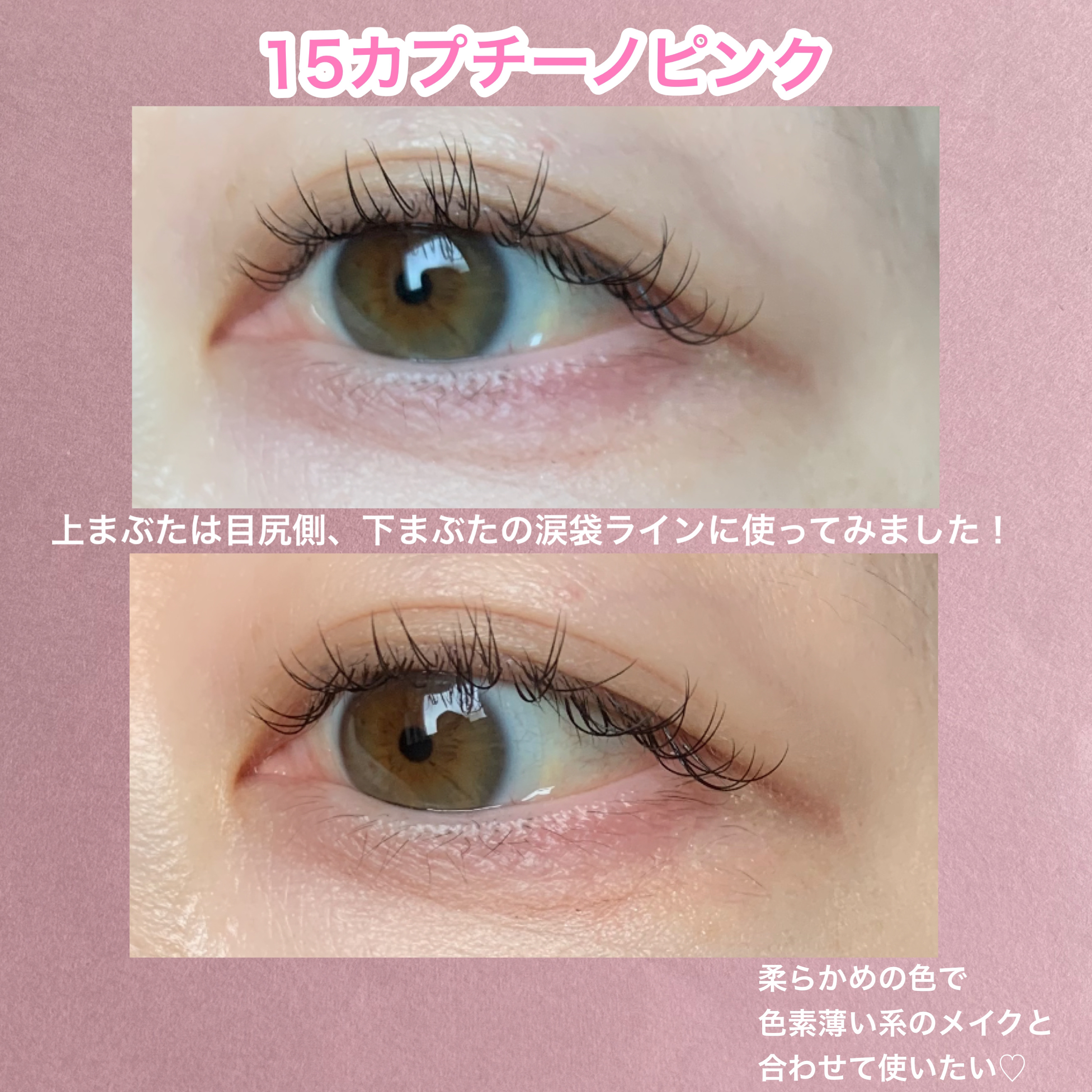 CANMAKEのクリーミータッチライナーの新色が過去1可愛すぎた…!♡ 15 カプチーノピンクってカラーなんだけど、優しげなピンクブラウンって感じで影みたいな色でさりげなく目幅を拡張してくれるの!🥺 アイラインはもちろん、下まぶたラインや涙袋の影に使うのが個人的に好き!🥰🩷 ぜひチェックしてみてね🌷