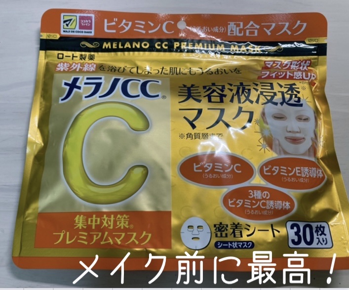 - 紫外線を浴びてしまった肌にもうるおいを。 美容液成分たっぷりうるおう、お得な大容量 「メラノCC 集中対策プレミアムマスクMK」は、うるおい成分「ビタミンC※1」「ビタミンE誘導体※2」「3種のビタミンC誘導体※3」を配合したフェイスマスクです。 美容液成分たっぷりで肌になじみやすく、密着力に優れたシートを採用。さらにうるおい成分であるグレープフルーツ果実エキス、レモン果実エキスを配合。 毎日のケアに使いやすい大容量30枚入り。爽やかな柑橘系の香り。 化粧水などで肌を整えた後にお使いください。美容液・乳液・クリーム等は、マスク使用後にお使いいただけます。 ※1アスコルビン酸 ※2酢酸トコフェロール ※33-O-エチルアスコルビン酸・アスコルビルグルコシド・テトラヘキシルデカン酸アスコルビル ロート製薬とマツモトキヨシホールディングスとの共同企画