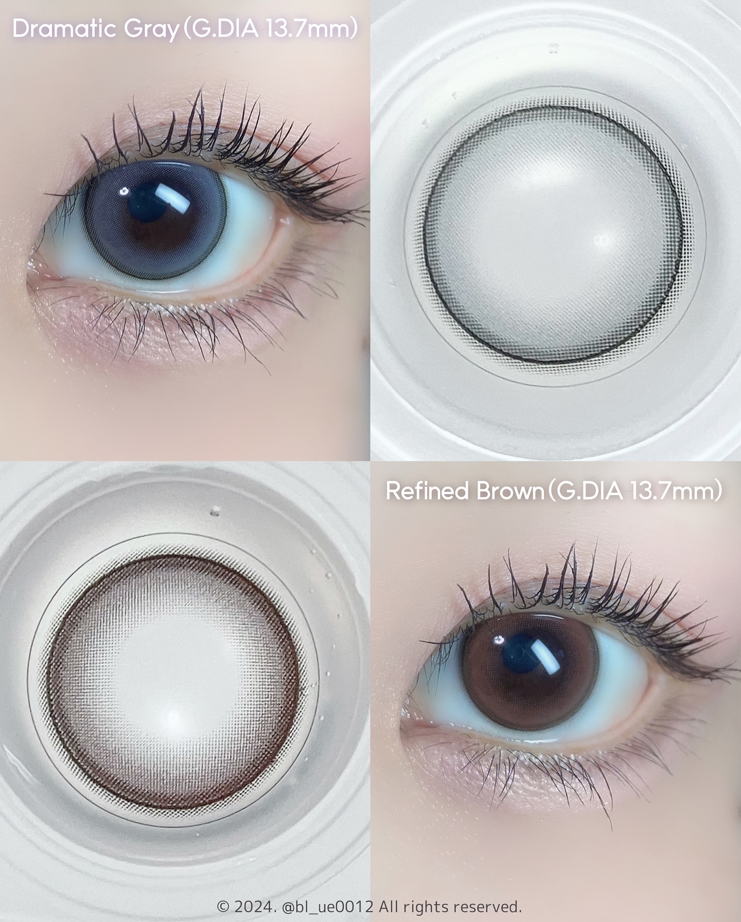 トレンド感たっぷりな細フチ系デザイン、全8色のラインナップです💫 シリコーンハイドロゲル素材でつけ心地◎. 落ち着いて洗練された雰囲気のグレーに繊細な細フチデザイン🥀 さりげないグレーで大人っぽく見せつつ、細フチでちゅるんとドーリーに✧˖° 明るすぎないけど透明感が出る、絶妙なグレーが暗めの瞳にも浮きにくく◎ 思った以上にナチュラルで使いやすいです...!