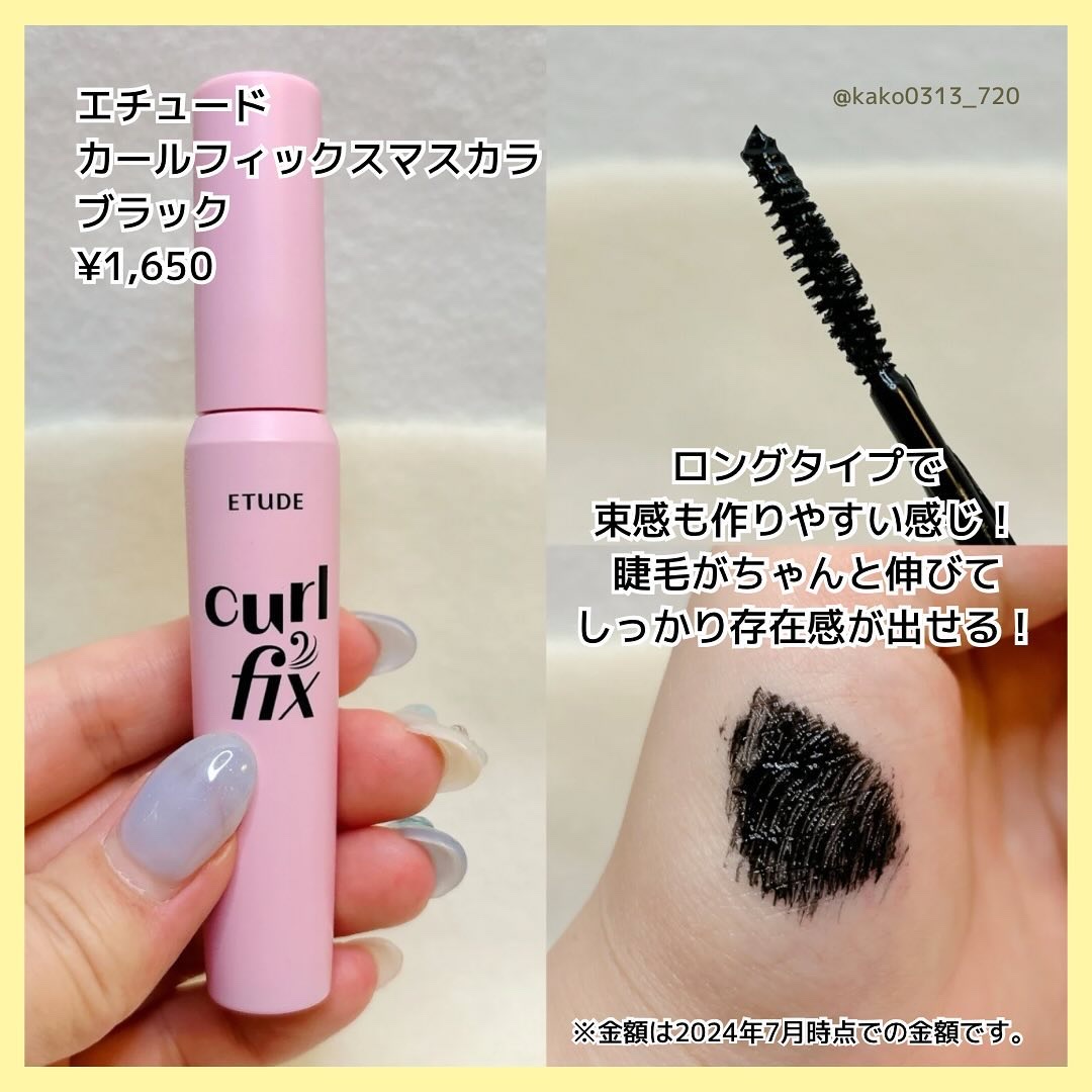 @hana.skincare._👈素肌をキレイにする混合肌スキンケア「カールキープ力がスゴイ!」\繊細で美しいカール!/✓カールがすぐ落ちてしまう方へ!✓日中パンダ目になりがちな方へ!🌿商品詳細エチュードカールフィックスマスカラブラック📌おす...