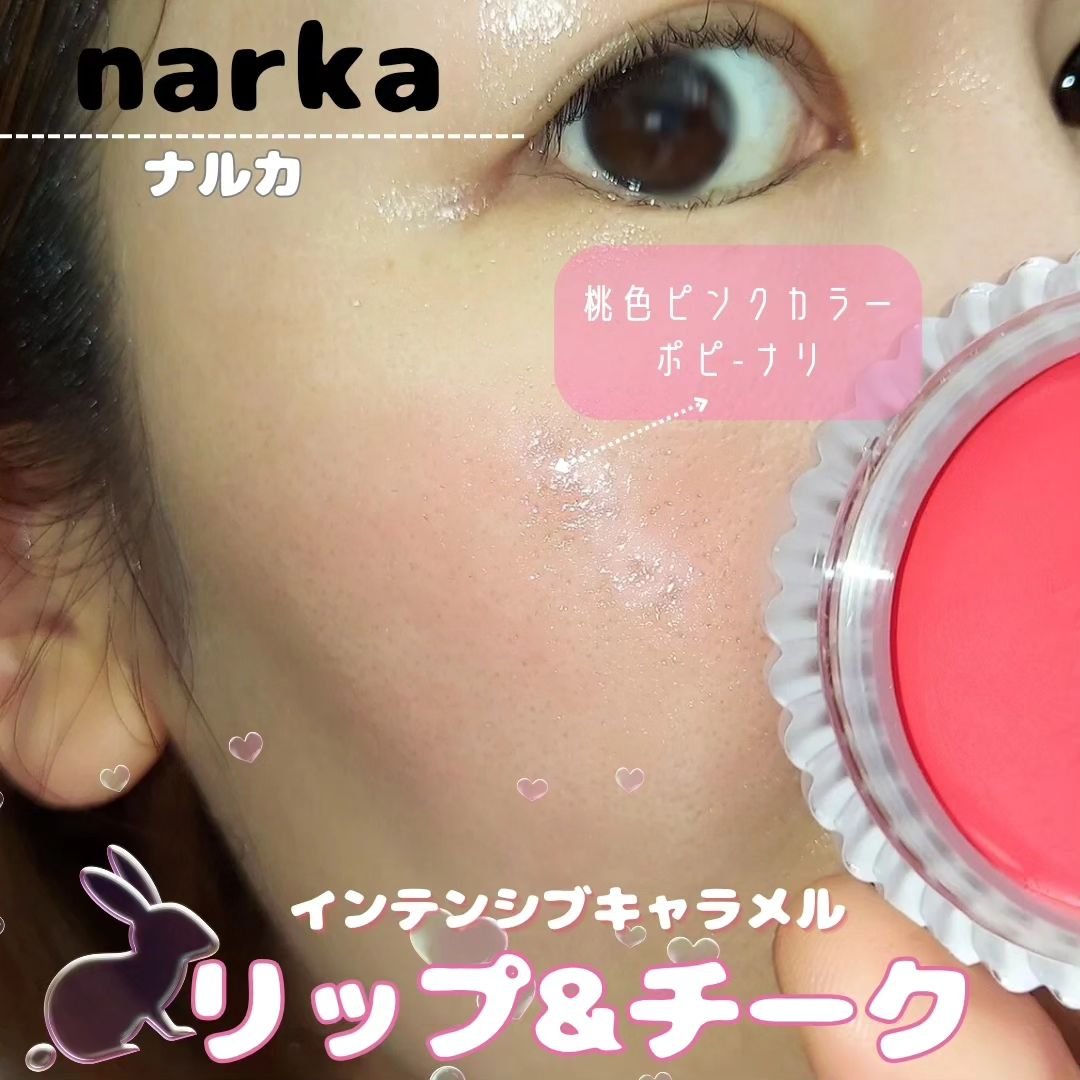 narka(ナルカ)様インテンシブキャラメルリップ&チークPoppynariこれ一つでリップにもチークにもなる!ヒマシ油19%配合✨️パケ可愛くて発色良くて保湿感もある⸜(*´꒳`*)⸝🌸チークで使うとツヤが出てくれてかわいい🤍#PR#nar...
