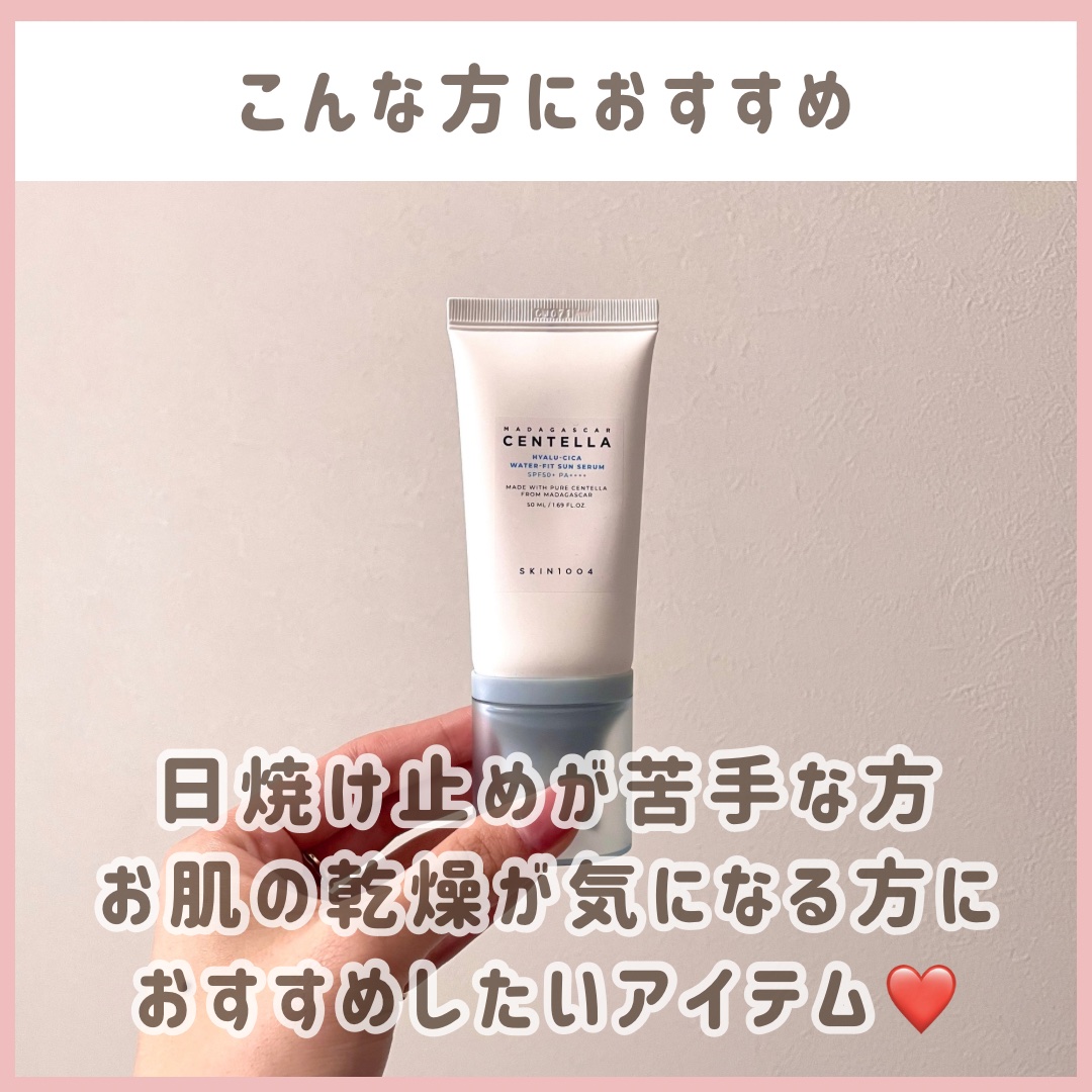 水分チャージ🔽ベタつきさようなら👋🌿SKIN1004ヒアルシカウォーターフィットサンセラムSPF50+PA++++ヒアルロン酸とツボクサエキス配合で乾燥肌に水分をチャージするサンセラム柔らかいクリームがすーっと伸びてセラムのような軽い付け心地...