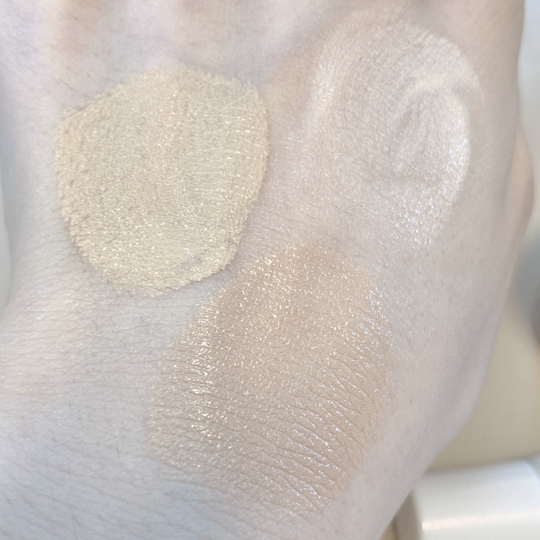 Wのほうが白っぽい黄色なのでトーンアップという点ではこっちの方が強い パールで艶っぽくみせてるのがW Wの方はマット目な感じで比較的サラサラとした肌表面の仕上がり Rはオイルっぽい感じがするので保湿を求めてるならこっちかも どちらも少量で伸びやすいです 特にRはバターが溶けるみたいな感じです