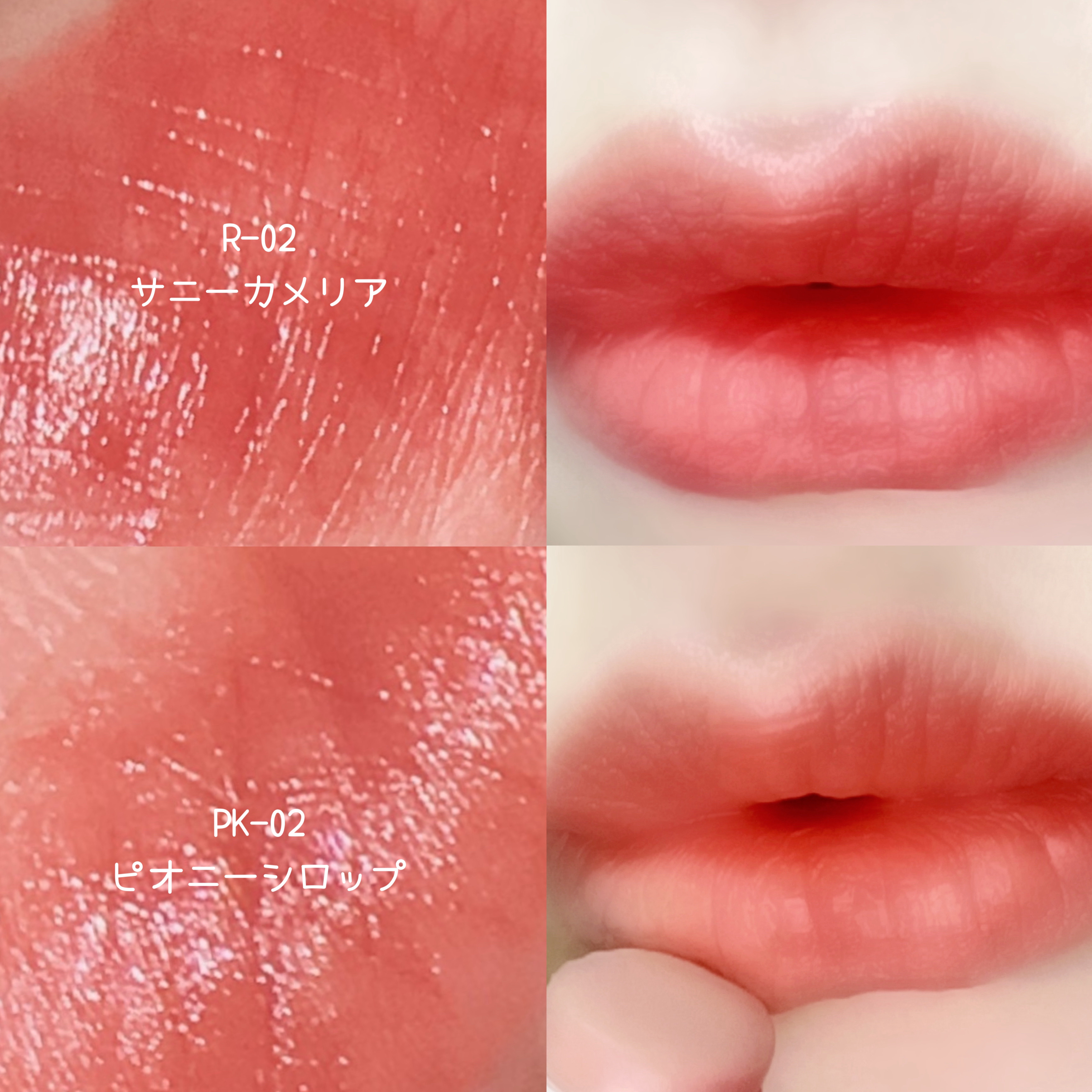 じゅわっと色づき艶のある血色感が可愛い︎🫶🏻 みずみずしいテクスチャーで湿度のある艶感🫧 02799 ORGASM ピーチピンクにゴールドパールの 多幸感溢れるカラー。 02802WANDERLUST 透明感爆上がりライラックカラー。 仕込みチークとしてもおすすめ!