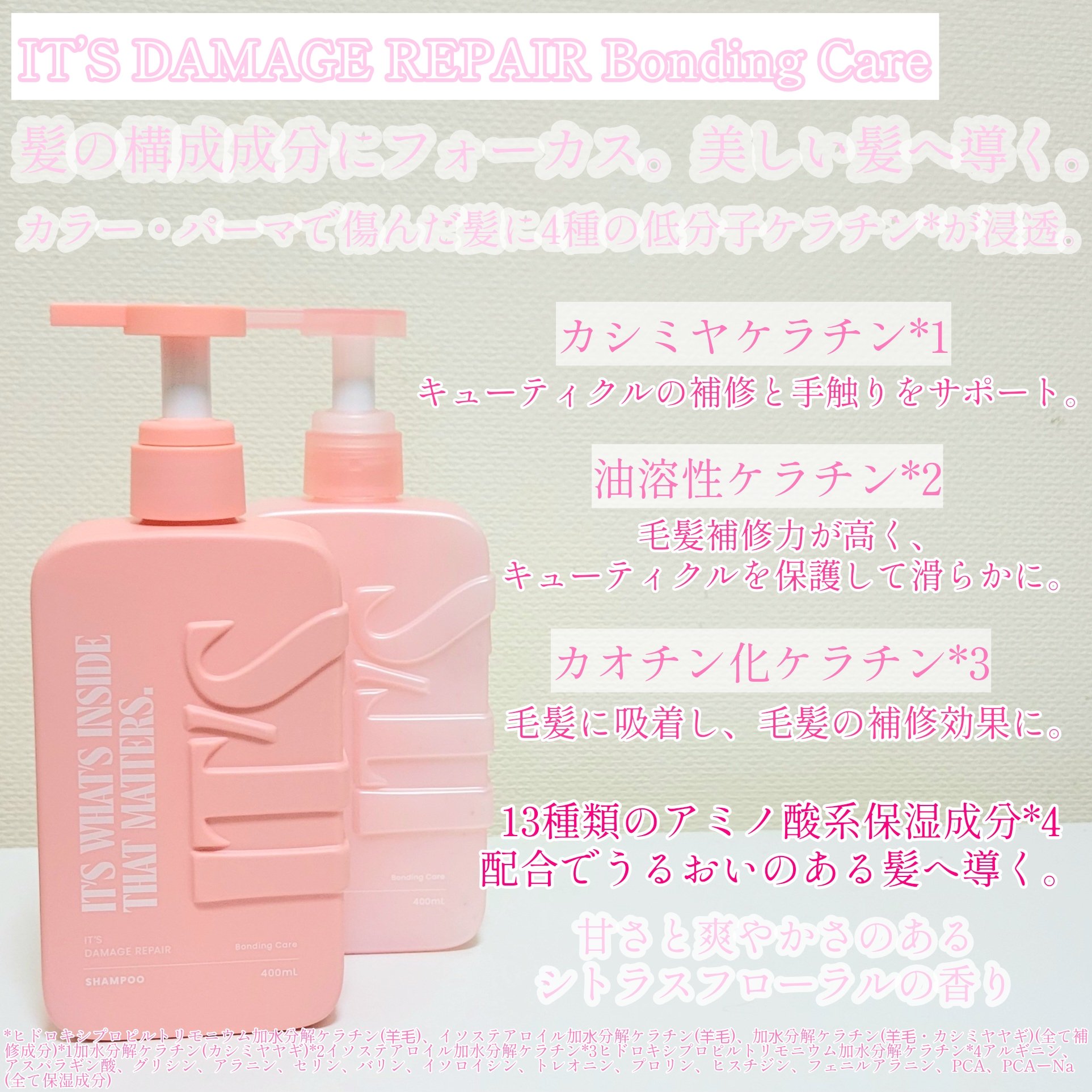 ✋【ウエルシアで買える!】シャンプー8種類の中からおすすめを選んでみたよ♡私のおすすめは…𝐈𝐓'𝐒𝐖𝐇𝐀𝐓'𝐒𝐈𝐍𝐒𝐈𝐃𝐄𝐓𝐇𝐀𝐓𝐌𝐀𝐓𝐓𝐄𝐑𝐒ダメージリペアボンディングケアシャンプー/トリートメントやっぱり成分オタクなので、補修成分の4種類...