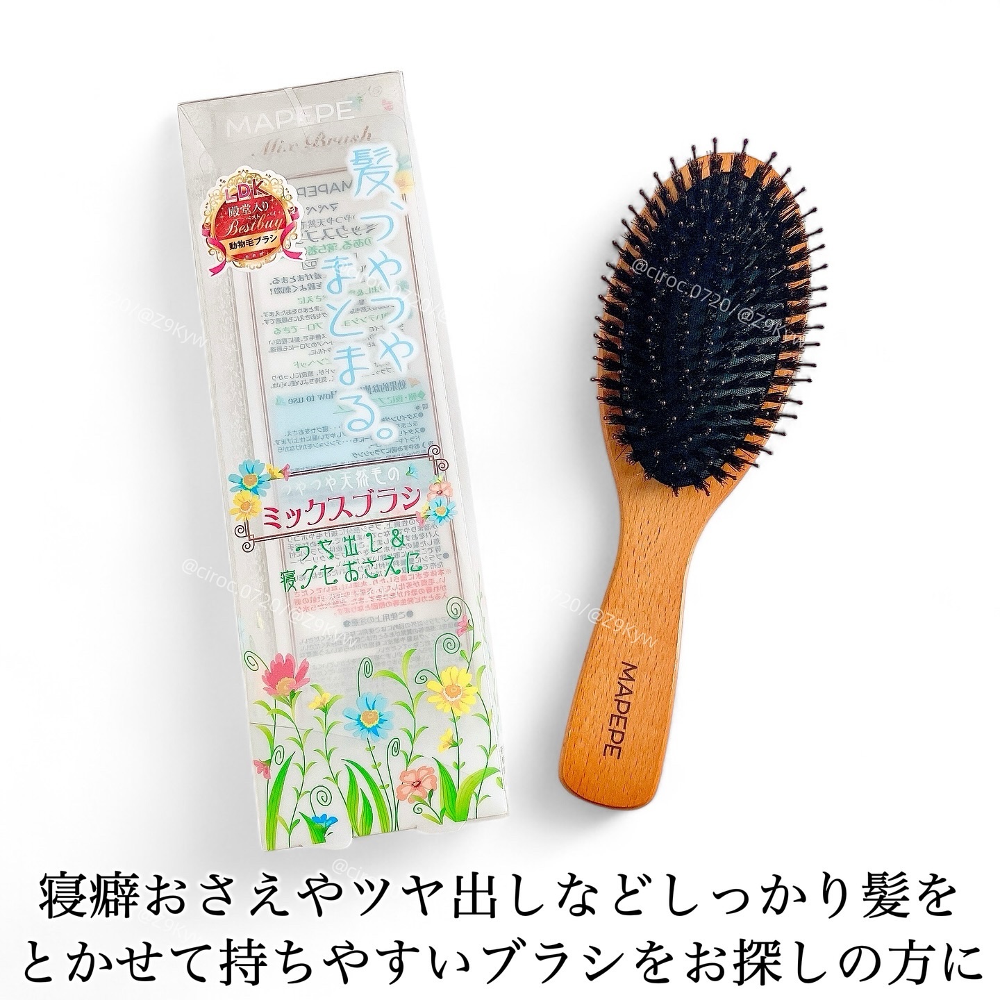 ツヤツヤになるという口コミを見てこの度マペペさんのヘアブラシを購入してみました💇♀️💁♀️マペペつやつや天然毛のミックスブラシ¥1,485猪+ナイロンのミックスブラシでバサっとパサついて広がった髪に使うと確かに数回通しただけで落ち着くし、...