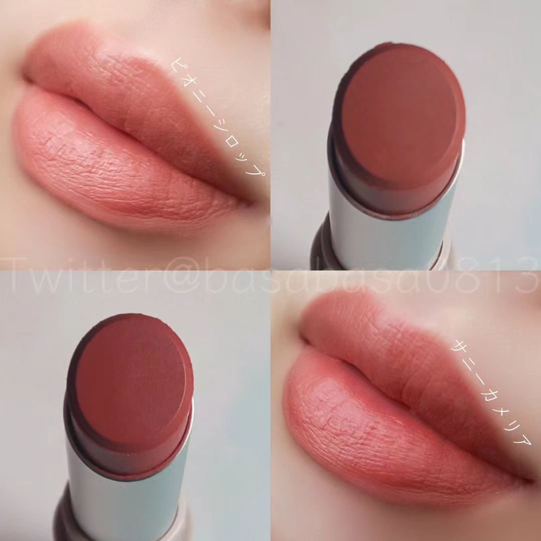 じゅんわり発色でマットなのにうるおい感のある唇仕上がり🥺✨ 乾燥した唇にも保湿リップなしでOK🙆♀️ PK-02 ピオニーシロップ ブルベも使えるコーラルカラー✨ ~お花畑が似合う少女のような唇へ~ R-02 サニーカメリア ニュートラルな抜け感レッド💋 ~飾りすぎない軽やかでソフトな唇へ~