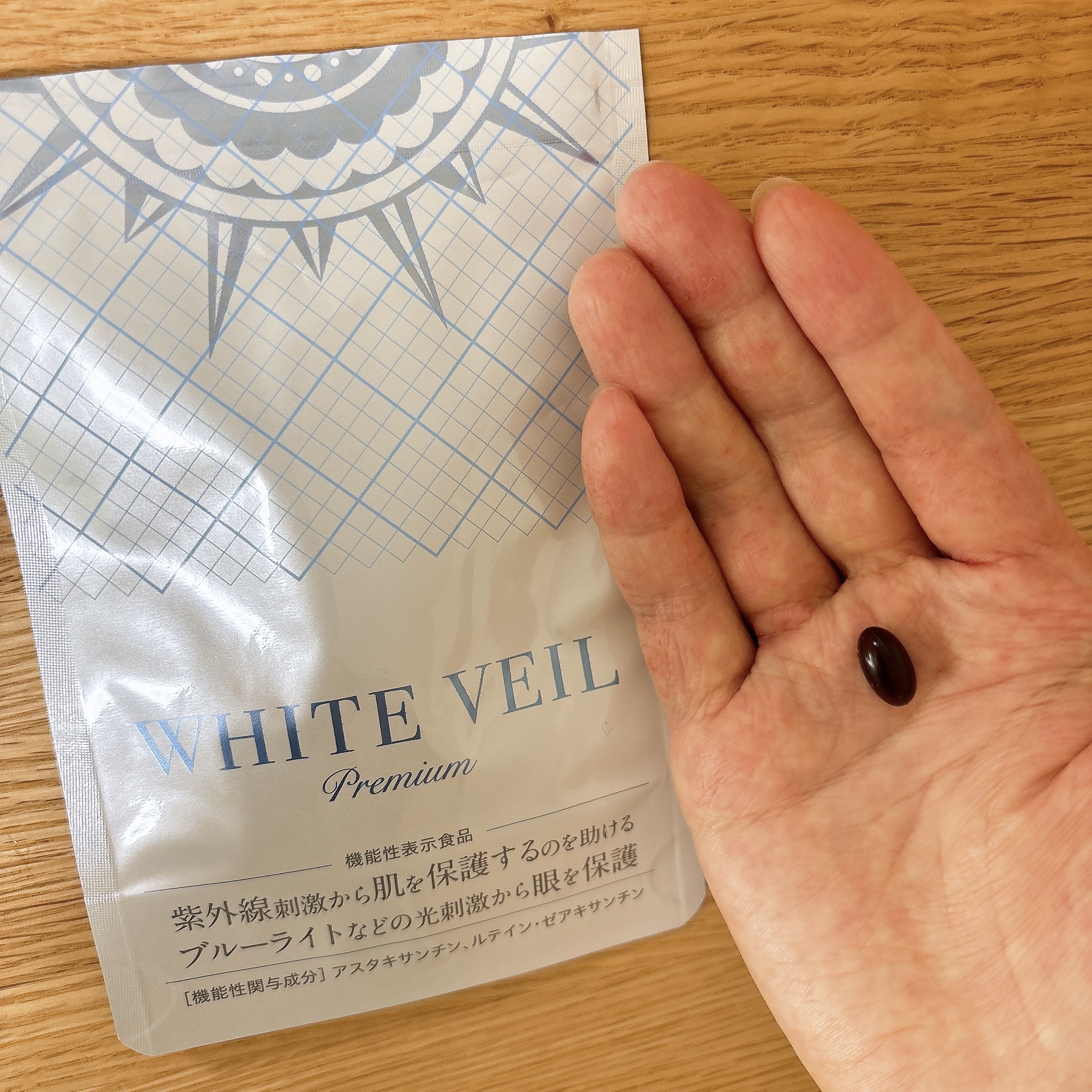 キラ★リズムホワイトヴェールプレミアム今年の夏も3ヶ月飲み続けてた。効果あるかないかわからないけど、なんとなく飲まないと不安になってしまう😅小さめのつるんとした粒。1日一粒飲むだけ。気になる香りもなく飲みやすい形状です。ブルーライトもカットし...