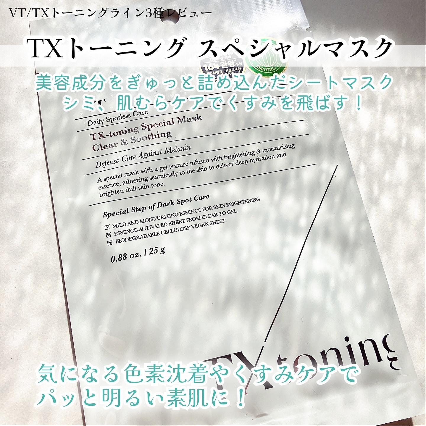 VTさまから商品を提供していただきました。◎VTTXトーニングトナーリードルショット300TXトーニングエッセンス2000TXトーニングクリームTXトーニングデイリーマスクTXトーニングスペシャルマスクTXトーニングシリーズはスキンケアで手軽...