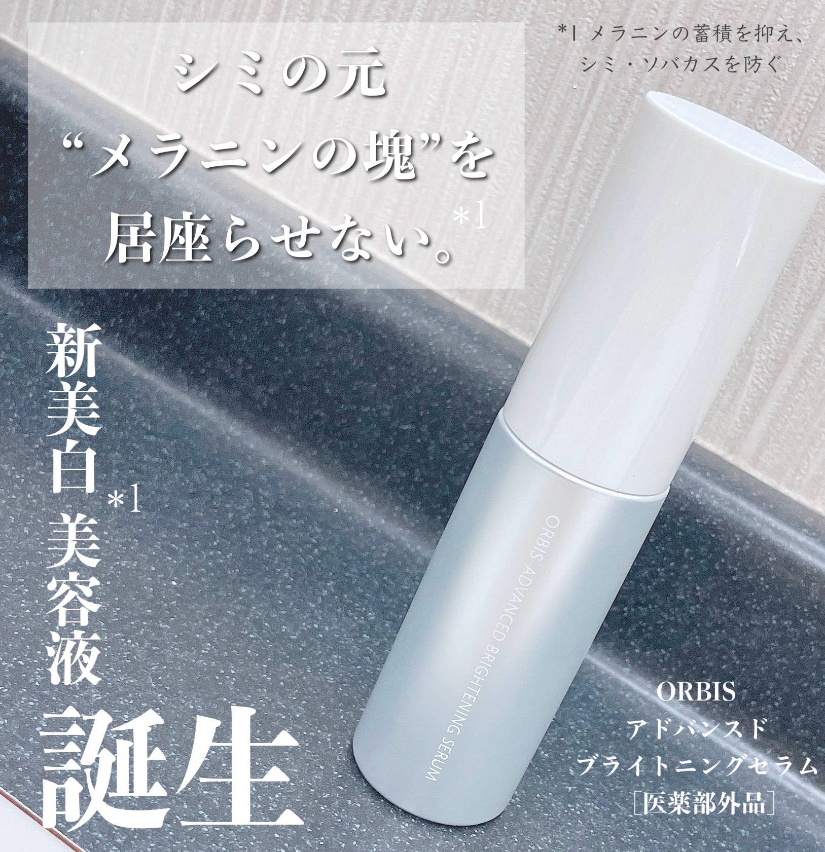 - 【医薬部外品】 ―美白*1美容液の夢*2― もうシミ*3リスクを恐れない。先端肌科学が導く新次元の輝き*4へ 新・美白美容液『アドバンスド ブライトニング セラム』は、ポーラ・オルビスグループ独自の美白有効成分「m-ピクセノール(デクスパンテノールW)」を配合。シミの原因になると考えられる“メラニンの塊”を居座らせない、粉砕と排出サポート*5の2ステップでメラニンの蓄積を抑え、シミ・ソバカスを防ぎます。そして、自分本来の、澄み渡るような透明感に寄り添う成分「アルテアネスレ*6」を新たに配合しました。『アドバンスド ブライトニング セラム』で美肌の阻害要因となるうるおい不足やシミ*3を予防するお手入れを続けることで、今の自分の肌も未来の肌もあきらめない、自分本来の冴えわたる透明美肌*7を目指します。 *1 メラニンの蓄積を抑え、シミ・ソバカスを防ぐ *2 当該製品でのお手入れが習慣化した状態を目指すこと *3 これからできる日焼けによるシミのこと *4 内容物の膜による光拡散効果(自社従来品比較) *5 ターンオーバーを促進して、メラニンの塊を微細化すること *6 アルテアエキス(保湿成分) *7 うるおいによる透明感のある肌
