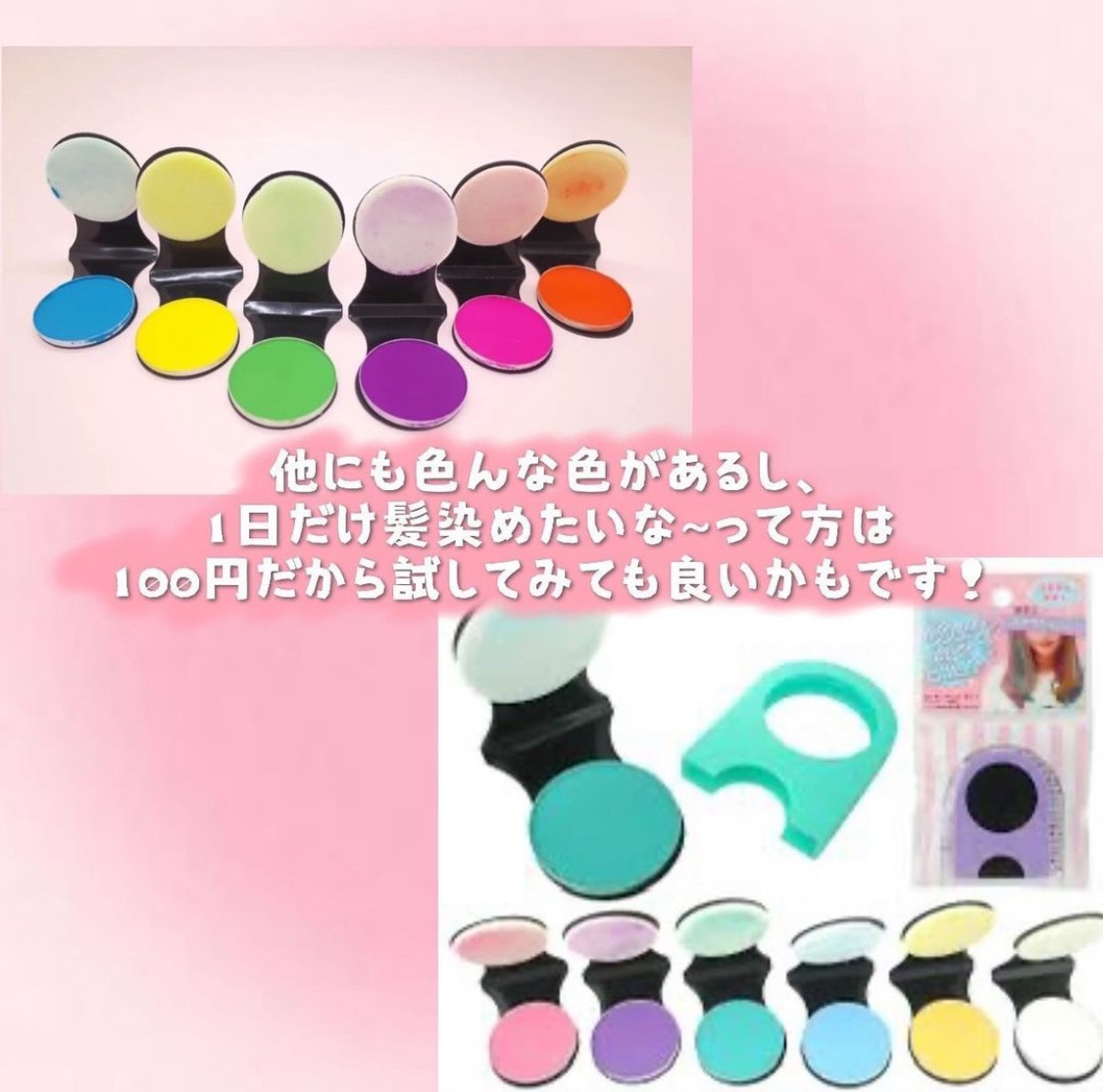#カラーヘアチョーク約、3グラムキャンドゥ・¥110全6種類展開誰でも簡単に\ヘアカラーチェンジ!!/カラーを付けたい部分の髪の毛を挟んで上から下に滑らせるだけで簡単にヘアカラーがチェンジ出来ます♫(軽く霧吹きで髪を湿らせると粉落ち色落ち軽減...
