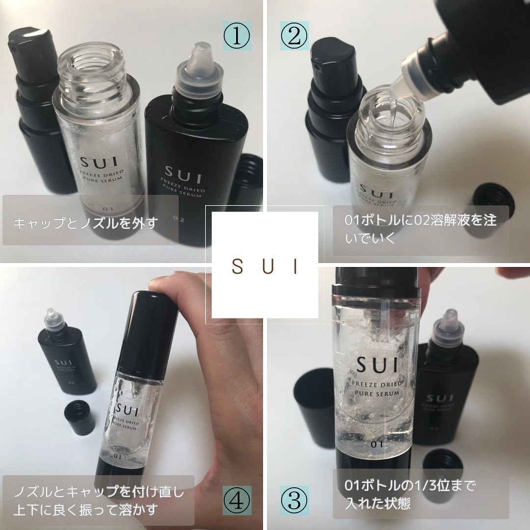 何が凄いかって、フリーズドライ加工した事により、防腐剤フリー(※フリーズドライパウダー)も実現された事。 気になる肌悩みの根本原因へアプローチしてくれて、年齢を重なると共に低下する肌の活性化を促してくれるんだって- ̗̀👏🏻 ̖́- 出来上がった美容液はサラっとしたテクスチャー。ボトル内部にあった結晶は溶けてたので、肌に付着する事も無かった。