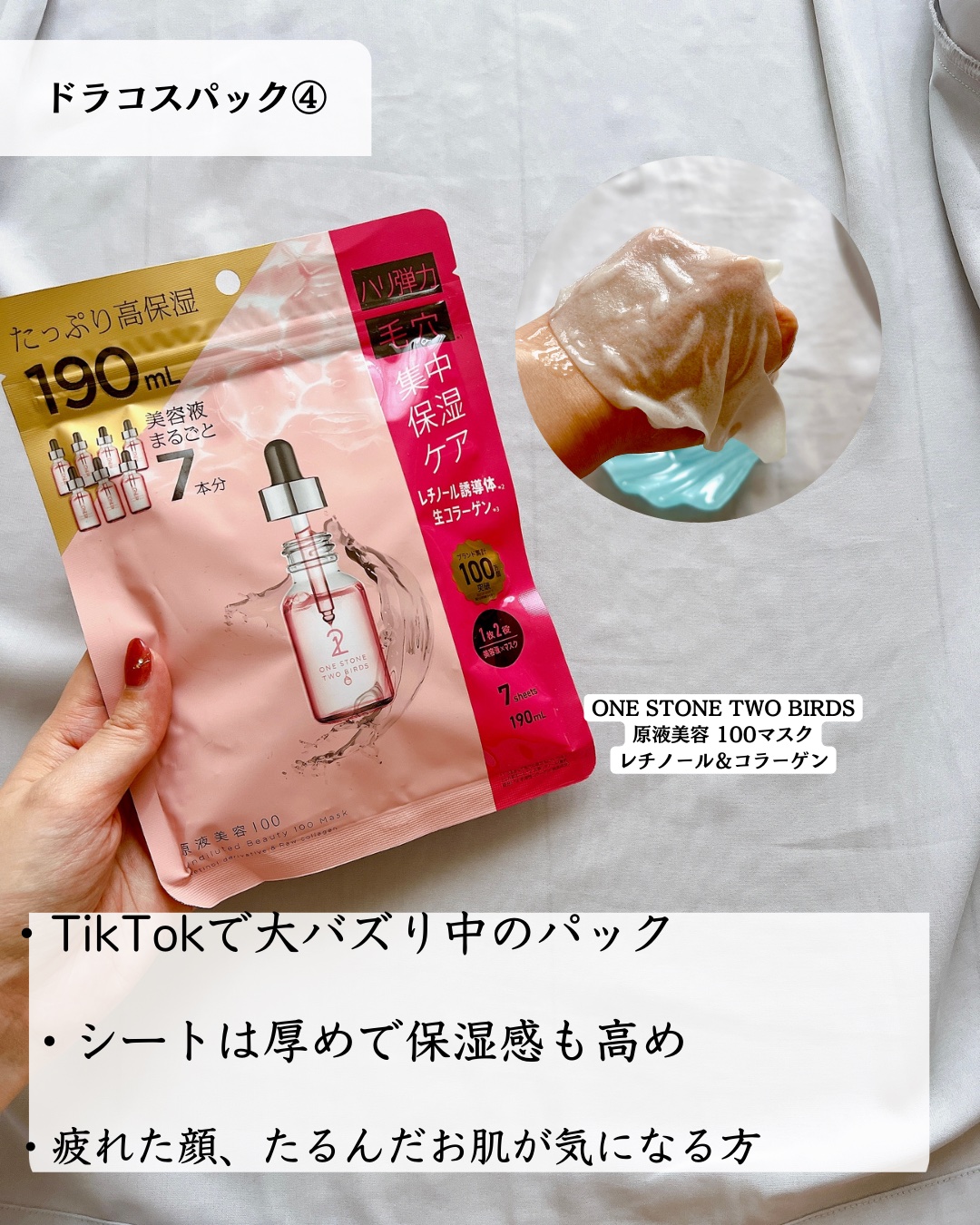 ONE STONE TWO BIRDS 原液美容100マスク レチノール&コラーゲン | 698円 |