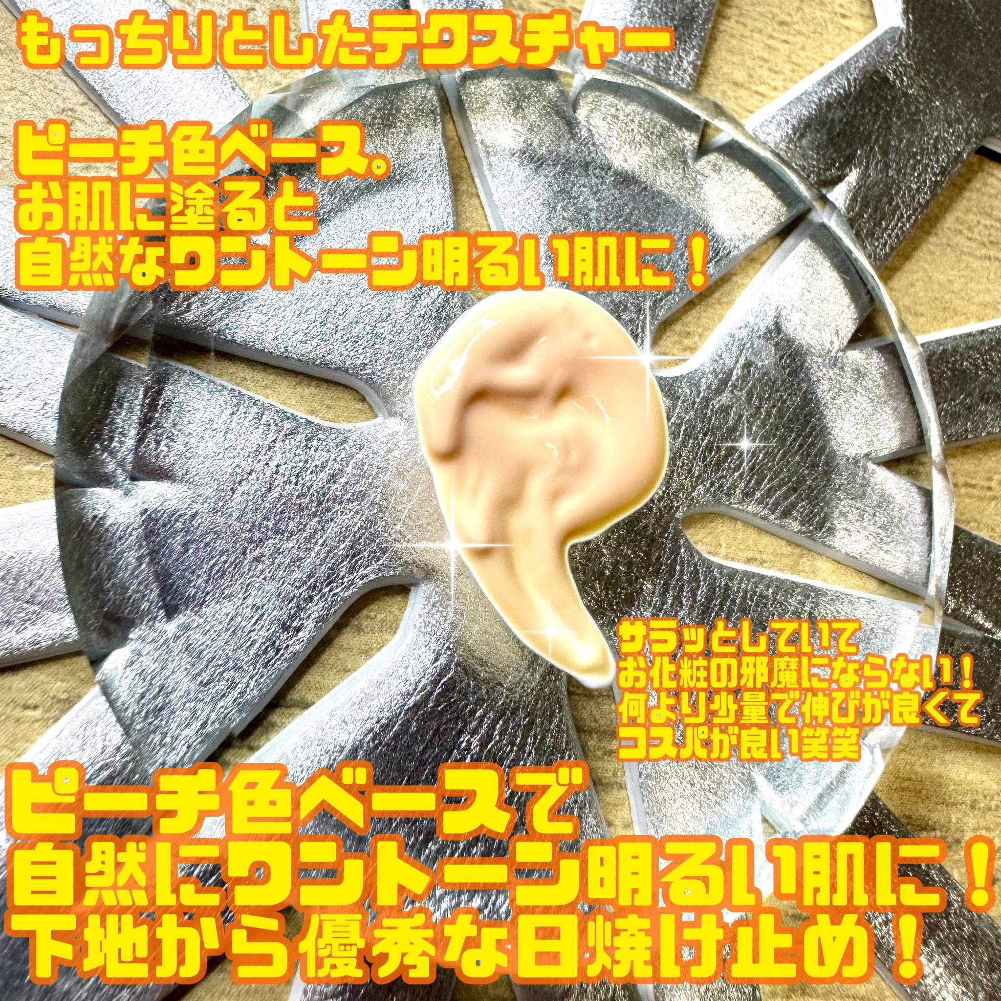 - ピーチベースなので、自然に肌をトーンアップしたように見せてくれる、化粧下地としても使える日焼け止めです。 夏が終わり、秋冬には日焼け止めを使わなくなる方も多くいますが、それは、大間違い!!! 夏じゃなくても紫外線は届いています。そのため、毎日日焼け止めで肌を保護することで、日焼けによるシミ・そばかすを防ぎます。 サラっとした仕上がりなので、メイクの邪魔にもならず、肌への負担感の少ない使い心地です。