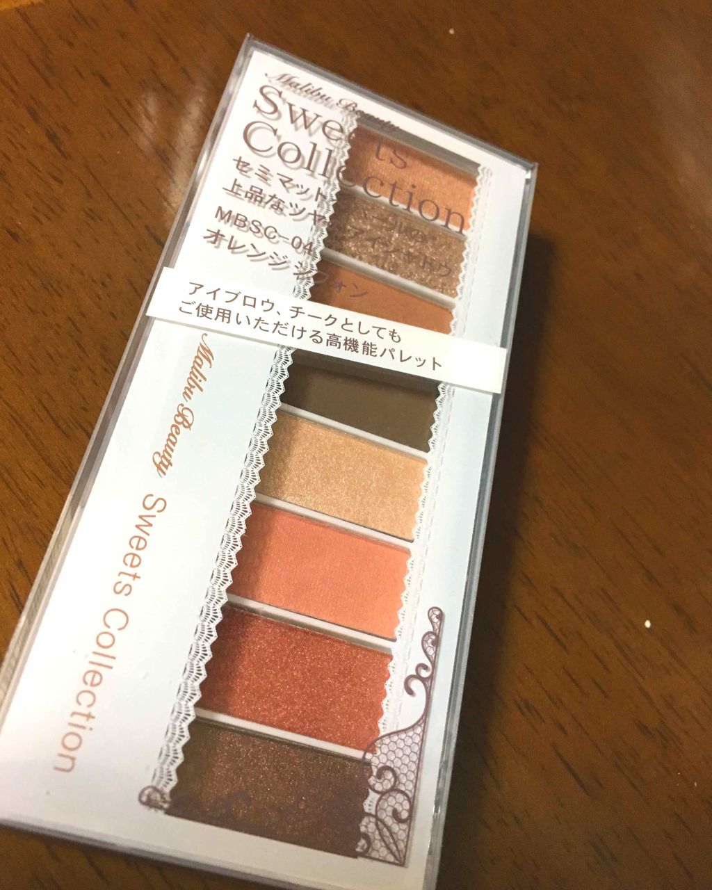 マリブビューティースイーツコレクション04オレンジシフォンです。ずっと前からパレットアイシャドウが欲しくてやっと購入しました!8色のカラーとチップが2つ付いていてアイブロウやチークにも使えます。1000円くらいだったので買いましたがすごく使い...