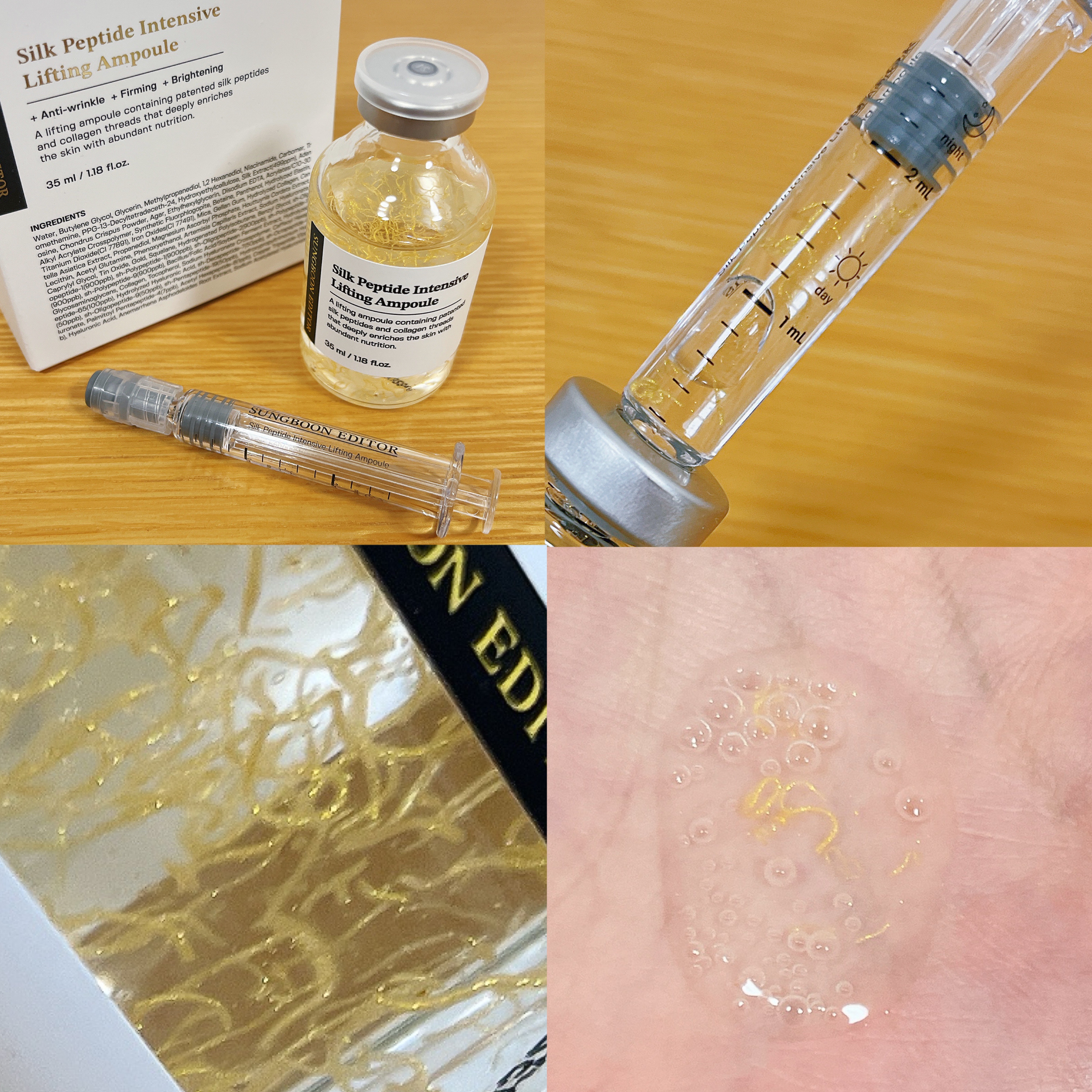 \深いしわも、弾力もこれ1本/シルクペプチドインテンシブリフティングアンプルを使用してみました🙋💛高濃度*1シルク*2+ペプチド*3でしわや弾力にアプローチ🫶ペプチド*3やコラーゲンを配合し、ハナスゲ根から抽出したボルフィリンを配合したアンプ...