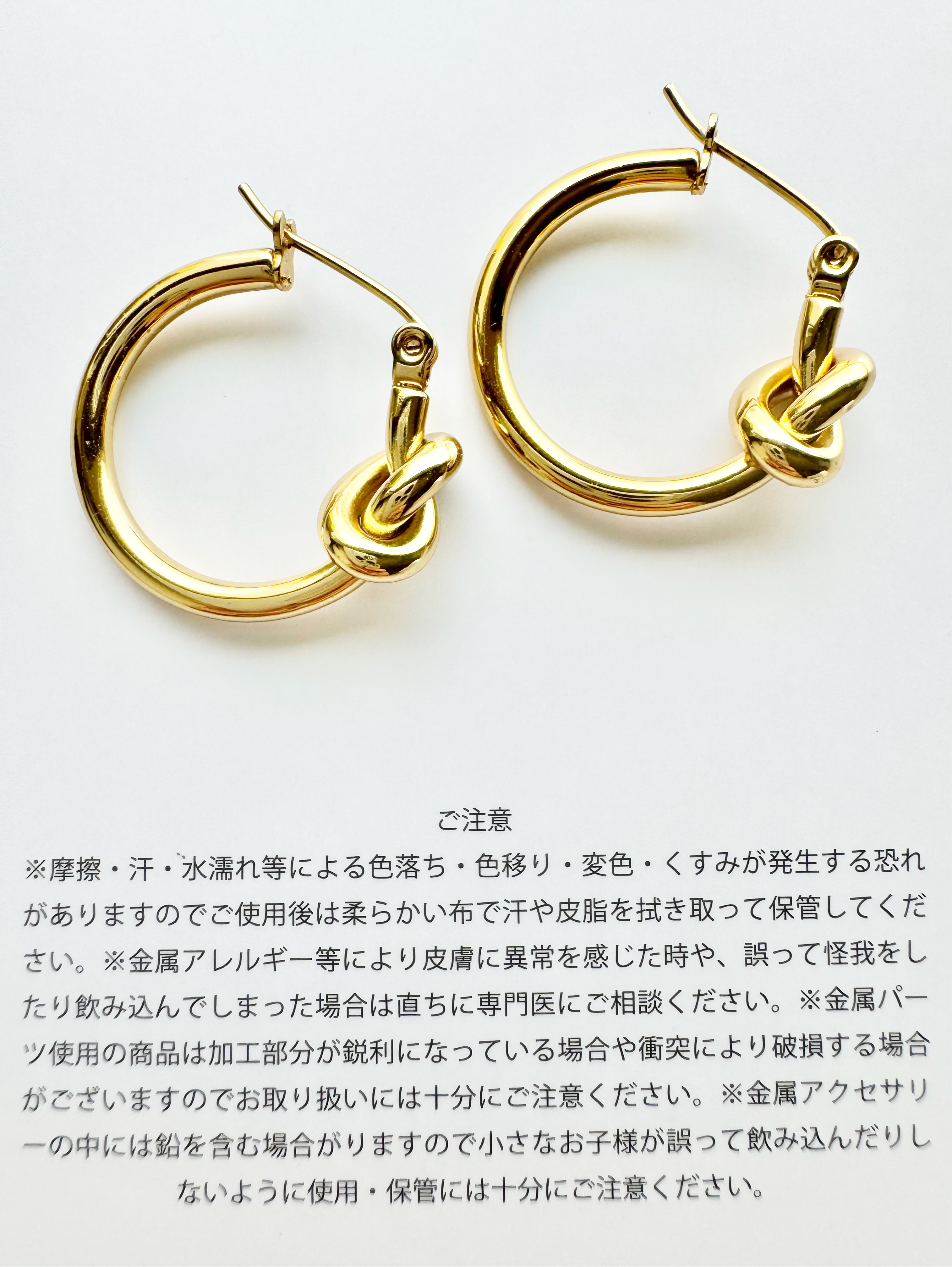 結び目デザインがオシャレで大人可愛い🤍 キャッチレスだから外れにくくて 落とす心配もないです🙆♀️◎ シンプルで大人可愛いデザインだから どんなコーディネートにも似合うよ🥰 金アレ対応のステンレスだから安心✨️