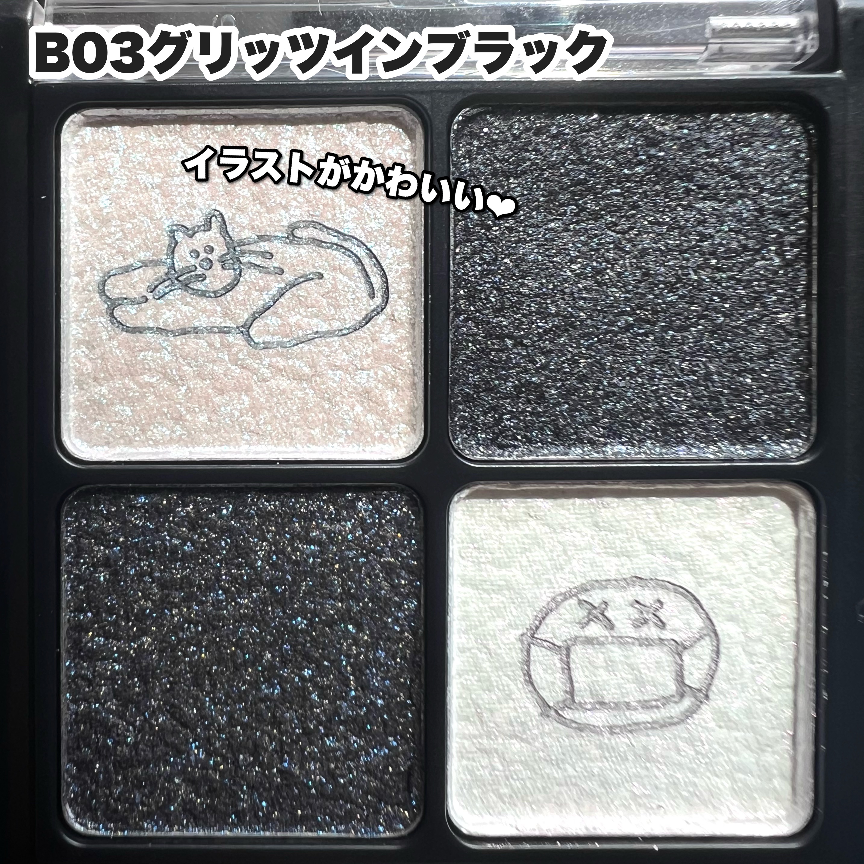 モノクロな世界観が可愛いイナピスクエアとコラボした𝟰色アイシャドウ🤍🖤 今回のコラボ商品はとにかくパケが可愛すぎるので、一つ持っておくだけでテンション上がります🤍🖤 後日コラボのチークやアイブロウもレビューするので、よければフォローしてね✓
