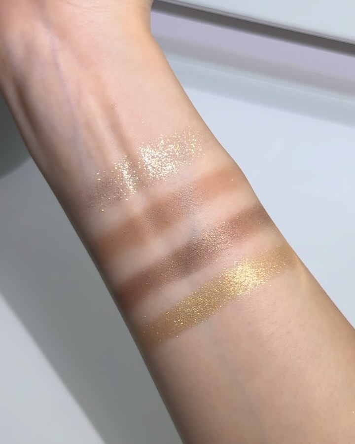 右上のピンクラメをベースに仕込んでメイクしたんだけどツヤと煌めき感えぐすぎる😳💎可愛い、、 そこに右下のカラーを重ねるとじんわり血色感が滲み出るような目元になるよ🦩 これは欠品店舗続出しそう🫣